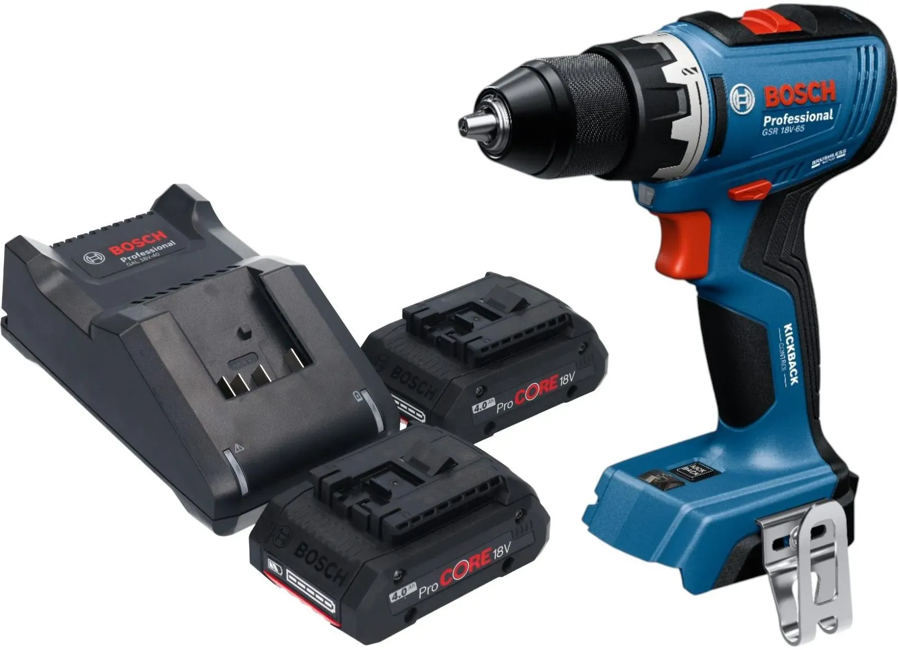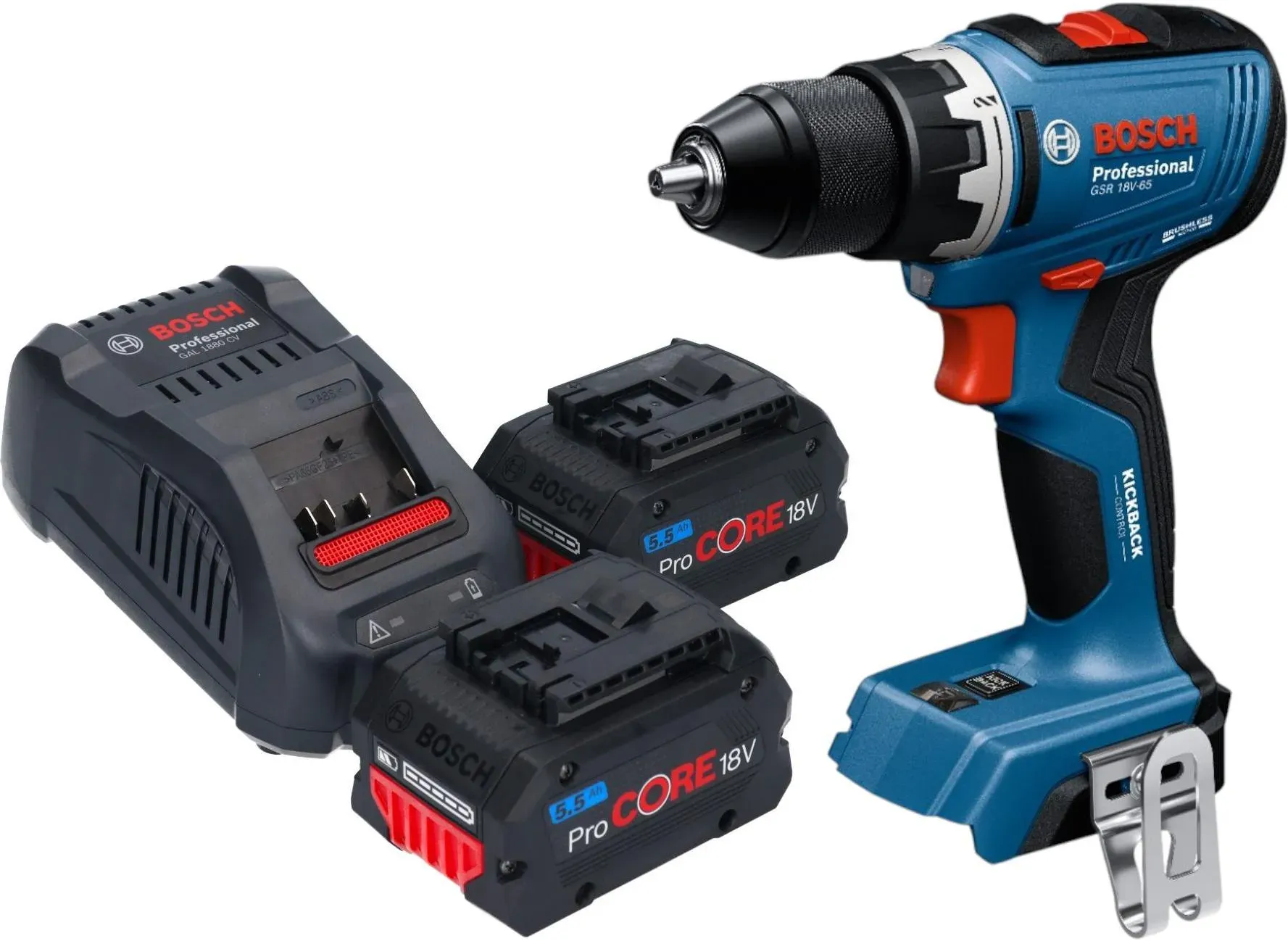 Zustand: Neu - Akku- & Bohrschrauber - Bosch Professional - 06019N3206 - EAN: 4053423321586 - ROBUSTE ANTRIEBSSTRÄNGE: Bürstenloser Motor mit verbesserter Leistung und Präzisions-Metallbohrfutter bieten ausgezeichneten Bohr- und Schraubbetrieb SCHUTZ UND SICHERHEIT: KickBack Control bietet hohen Schutz zur Unterstützung bei längerer Verwendung WERKZEUGLEISTUNG: Hohe Leerlaufdrehzahl (500/2000 min-1) und hohes Drehmoment (31/55 Nm) für mehr Effizienz ZWEI ARBEITSLICHTER: Größerer Ausleuchtungsbereich für klare Sicht auf den Arbeitsbereich Lieferumfang: GSR 18V-65, 2x ProCORE18V 4.0Ah, L-BOXX - bei Amazon.de Ein sehr gutes Angebot mit zwei ProCORE 4,0 Ah Akkus und Ladegerät in einer L-Boxx, das eine hohe Leistung und gute Ausstattung bietet. Manomano.d e
