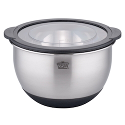 GSW - EAN: 4005643566117 - Diese GSW Schüssel ist aus hochwertigem Edelstahl rostfrei. Sie verfügt einen Antirutsch-Silikonboden für den sicheren Stand und ist ideal zum Zubereiten, Servieren und Aufbewahrung und ideal für Tisch, party und Buffet. Die Schüssel hat über einen luftdichtem Aufbewahrungsdeckel. Innen ist poliert mit Literskala und außen ist pflegeleicht mattiert. Sie sind ineinander stapelbar zu platzsparenden Lagerung. Mit dieser Schüssel aus dem Hause GSW wird die Küche um formschöne und praktische Utensilien ergänzt. - bei metro.de - aus Yadore Produktdaten ![]() ![]() GSW Primo aus Edelstahl mit luftdichtem Deckel, 16 cm