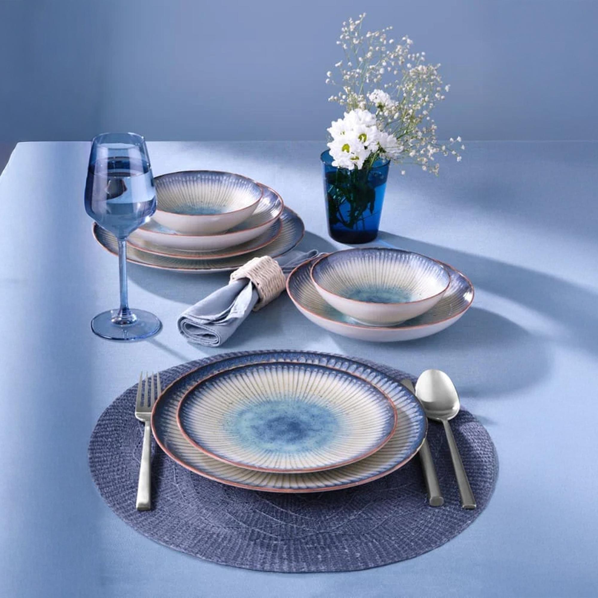 EAN: 8691850412284 - MerkmaleMaterial: Bone PorzellanFarbe: Creme mit blauer Struktur im InnerenUmfang: 18 Teile, geeignet für 6 PersonenOberfläche: Glatt, kratzfest und bruchresistentPflege: SpülmaschinengeeignetVorteileDas Sare Atina Tafelservice vereint außergewöhnliches Design mit hoher Alltagstauglichkeit perfekt für Familien und Haushalte, die Wert auf moderne Tischkultur legen:Einzigartige Optik: Die besondere blaue Struktur im Inneren jedes Tellers macht jedes Stück zu einem Blickfang und bringt Farbe und Lebendigkeit auf den Tisch.Für den täglichen Gebrauch: Robustes Bone Porzellan, das kratz- und bruchfest ist, sorgt für eine lange Lebensdauer auch bei regelmäßigem Einsatz.Komplett-Set für 6 Personen: Mit 24 Teilen ideal für Familienmahlzeiten, Dinnerpartys oder gesellige Abende mit Freunden.ästhetik & Funktionalität: Vereint elegantes Design mit praktischer Handhabung die perfekte Balance zwischen Alltagstauglichkeit und besonderem Anlass.Pflegeleicht: Spülmaschinengeeignet und dauerhaft hygienisch, ohne Glanzverlust nach häufigem Gebrauch.Verwendung und PflegehinweisePflegeleicht: Einfach in der Spülmaschine reinigen, bleibt dauerhaft glänzend und edel.Tipps für die Nutzung: Ideal für den täglichen Einsatz, Familienfeste oder als stilvolles Geschenk. Kombinierbar mit weiteren Artikeln der Digibone Home Serie. - bei kaufland.de - aus Yadore Produktdaten ![]() ![]() GÜRAL Sare - Atina Tafelservice, eBay 24-tlg., 6 Personen, Porzellan, Buntes Design