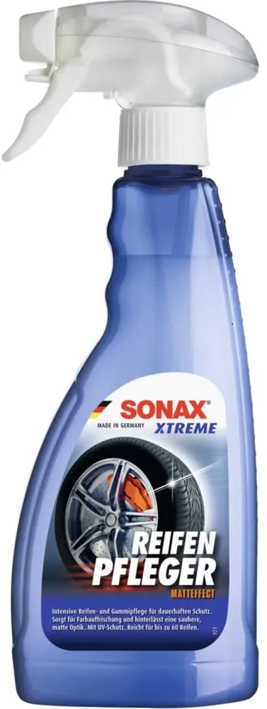 5 Händlerangebote bei billiger.de - Kategorie: Autoreinigung & Pflege - Sonax - Dringt tief in die Oberfläche ein und hinterlässt eine lang anhaltende pflegende Schutzschicht. Ist für alle reifentypen geeignet und reicht für bis zu 60 Reifen. Frischt die Farbe auf und sorgt für ein neuwertiges Aussehen. Beseitigt bei regelmäßiger Anwendung Braunfärbungen am Reifen. Bietet einen effektiven Schutz vor Schmutz, Witterungseinflüssen, vorzeitiger Alterung und Rissbildung, sowie Ozon-Einwirkungen und dem Ausbleichen durch UV-Strahlen. Lieferumfang: 1x SONAX 02562410 XTREME ReifenPfleger Matteffect (500 ml) SONAX Autopflegeprodukte - Made in Germany - Damit glänzt, was uns bewegt - GTIN:4064700256248 Ein hochwertiges Produkt von ValetPRO, das sowohl für Kunststoff- als auch Gummioberflächen im Innen- und Außenbereich des Autos geeignet ist. ![]() ![]() ValetPRO - Classic Protectant - Kunststoff- & Gummipflege für Innen- und Außen am Auto - 500ml