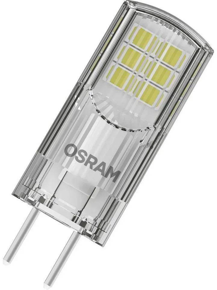 8 Händlerangebote bei billiger.de - EEK: F - Kategorie: LED-Lampen - Osram - Die lange Lebensdauer von 15.000 Stunden zeichnet das Osram LED-Leuchtmittel mit GY6.35 Fassung aus. Leistungsstarkes 2,6 W LED-Leuchtmittel mit einer sehr guten Lichtausbeute Das aus Kunststoff bestehende Leuchtmittel hat eine Lichtleistung von 300 lm und einen Energieverbrauch von 2,6 W. Das entspricht einer Standard Glühbirne von 28 W. Durch die zuvor genannten Werte wird eine sehr gute Lichtausbeute ermöglicht. Es wird mit einer Spannung von 12 V betrieben. Klassisches LED-Leuchtmittel in ansprechender Optik Mit einer Farbtemperatur von 2.700 K ist das Osram GY6.35 LED-Leuchtmittel somit ideal für den Wohn- und Essbereich geeignet. Gleichzeitig passt die klare Farbe zu allen Einrichtungsstilen. Osram - mehr als nur Licht Der Lampenhersteller mit Hauptsitz in München hat bereits eine 110-jährige Geschichte und gehört zu den weltweit führenden Hightech-Unternehmen. Die Erfahrung in Design und Produktion verbinden Licht mit Intelligenz, Innovation und Leidenschaft und bereichern so das tägliche Leben. - GTIN:4058075432123 Eine sehr preiswerte 2.6W Niedervoltlampe, die eine 30W Lampe ersetzt. ![]() ![]() OSRAM LED Pin Lampe mit GY6.35 Sockel, Warmweiss (2700K), 12V-Niedervoltlampe, 12V-Niedervoltlampe, 2.6W, Ersatz für herkömmliche 30W-Lampe
