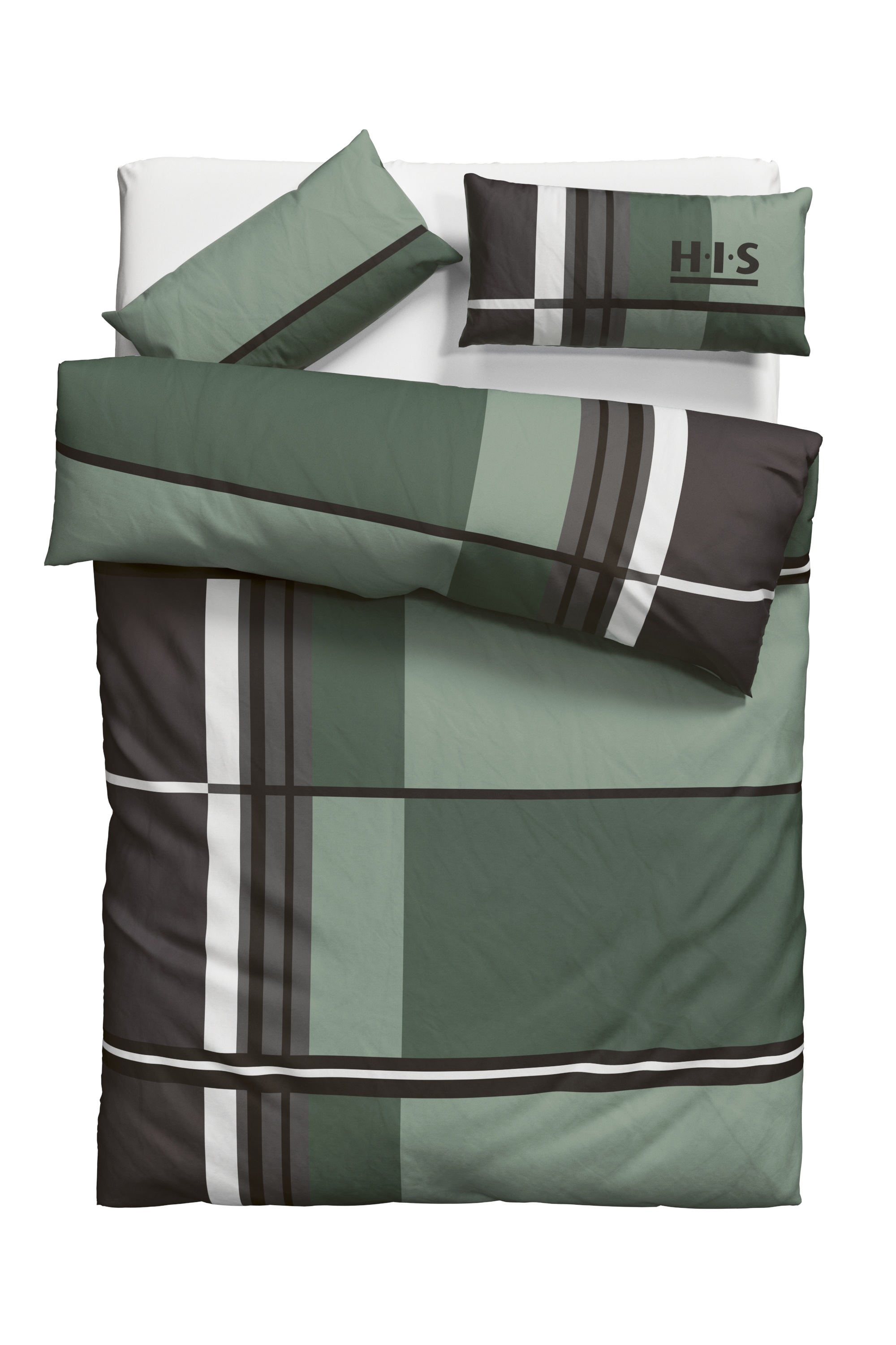 lieferbar-in 1-2 Werktagen bei dirH.I.S Bettwäsche Cassia, Linon, 2 teilig, in sportlichem Karo Design,Bettwäsche aus Baumwolle,ab Gr. 135x200 cm grün