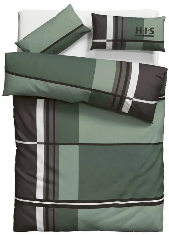 Bettwäsche-Sets Wohnen Schlafzimmer Bettwaren - - Die karierte Bettwäsche »CASSIA« von H.I.S ist ein Blickfang in deinem Schlafzimmer. Sie überzeugt durch ein trendiges Design und ist in attraktiven Farben gestaltet. Mit ihrem modernen und sportlichen Muster setzt die Bettgarnitur dekorative Akzente in deiner Einrichtung. Zur Reinigung kannst du sie bei 60 °C in der Maschine waschen. Lädt zu traumhaften Nächten ein: die gemusterte Bettwäsche »CASSIA« von H.I.S., Allgemein: Anzahl Teile: 2 tlg., Anzahl Bettbezüge: 1 St., Anzahl Kissenbezüge: 1 St., Optik/Stil: Farbe: grün, Optik Kissenbezug: kariert, Optik Bettbezug: kariert, Verschluss: Verschluss Kissenbezug: Knöpfe, Verschluss Kissenbezug Details: verdeckte Knopfleiste, Verschluss Bettbezug: Knöpfe, Verschluss Bettbezug Details: verdeckte Knopfleiste, Material: Materialart: Linon, Materialzusammensetzung: Obermaterial: 100% Baumwolle, Flächengewicht: 91 g/m2, Pflegehinweis: Pflegehinweise: nicht bleichen, Keine chemische Reinigung, 60u00b0C Maschinenwäsche, Trocknen mit reduzierter thermischer Belastung (60u00b0C), mäßig heiß bügeln (150u00b0C), Wissenswertes: Farbhinweise: Bitte beachten Sie, dass die Farben auf Ihrem Monitor von den Originalfarbtönen abweichen können., OEKO-TEX Standard 100 Zertifikatsnummer: Sammelzertifikat 09.0.67812, Maßangaben: Breite Bettbezug: 135 cm, Länge Bettbezug: 200 cm, Breite Kissenbezug: 40 cm, Länge Kissenbezug: 80 cm - Decken Breite: 135cm - Versandkostenfrei: false - Sale: true - ... ![]() ![]() H.I.S Bettwäsche 'Cassia', in sportlichem Karo Design,Bettwäsche aus Baumwolle,ab Gr. 135x200 cm