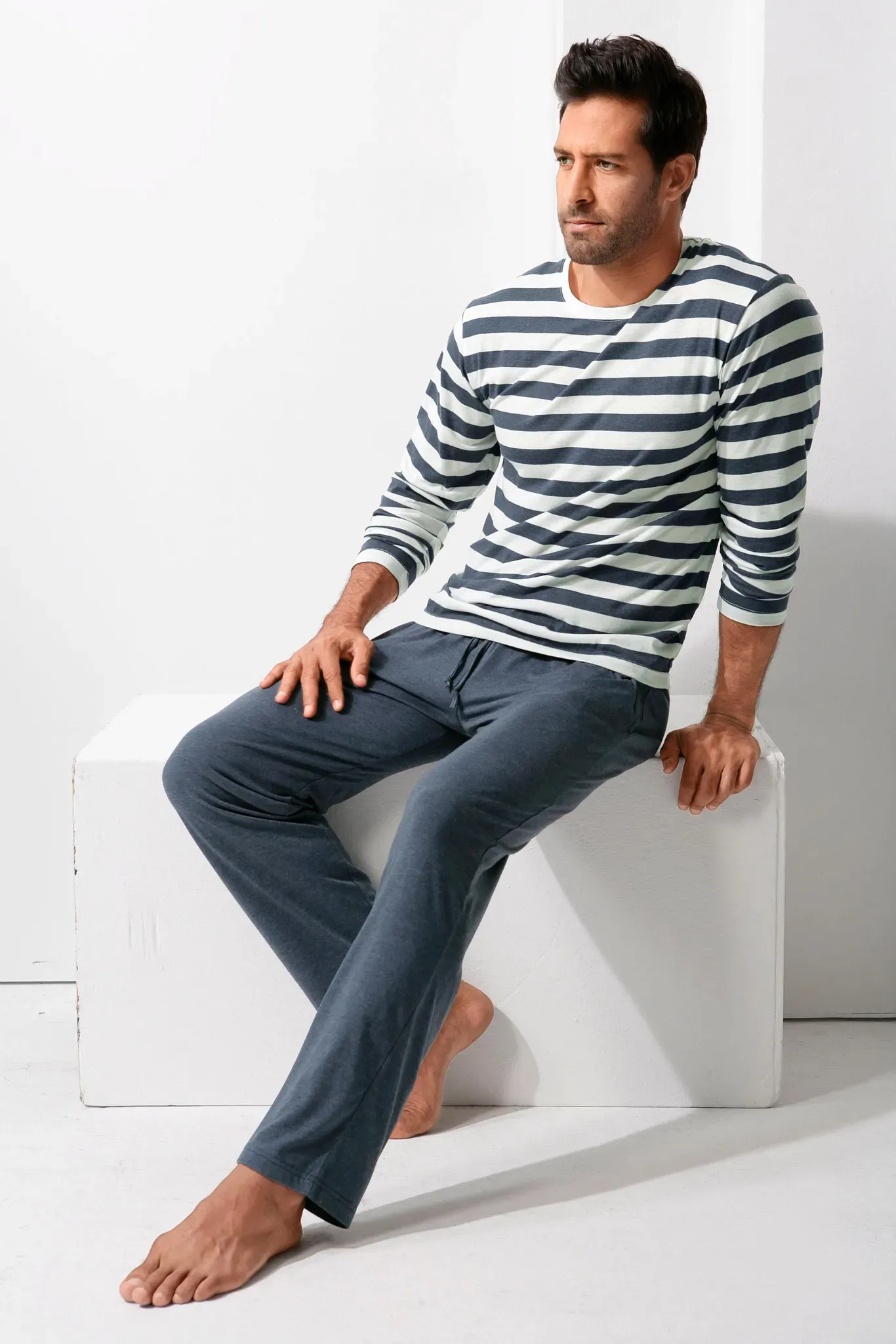 Nachtwäsche Mode Bekleidung - - H.I.S Pyjama in langer Form. Oberteil mit schönen Streifen. Aus 60% Baumwolle, 40% Polyester, Farbe: Farbbezeichnung: navy, Details: Taschen: Eingrifftaschen, Ausschnitt: Ausschnitt: Rundhals, ärmel: ärmellänge: Langarm, Passform/Schnitt: Passform: bequem, Beinform: gerade, Beinabschluss: abgesteppte Kante, Bundabschluss: elastischer Bund, Material: Materialart: Single Jersey, Materialzusammensetzung: Obermaterial: 60% Baumwolle, 40% Polyester, Pflegehinweise: Maschinenwäsche, Optik/Stil: Optik: gestreift, Stil: Basic - Versandkostenfrei: false - Lieferzeit: 3 Tage - Sofort verfügbar: true - - - bei baur.de - gefunden von shopping24 Für 34.39 Euro erhalten Sie einen langen Schlafanzug in Marine-Rot-Weiß, der eine ansprechende Farbkombination bietet. ![]() ![]()