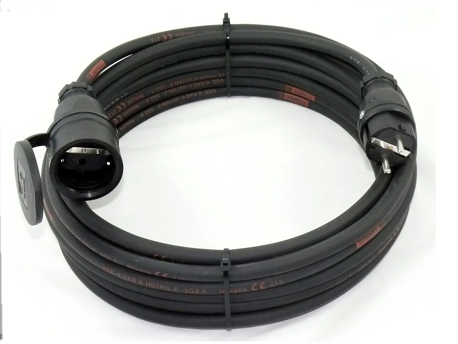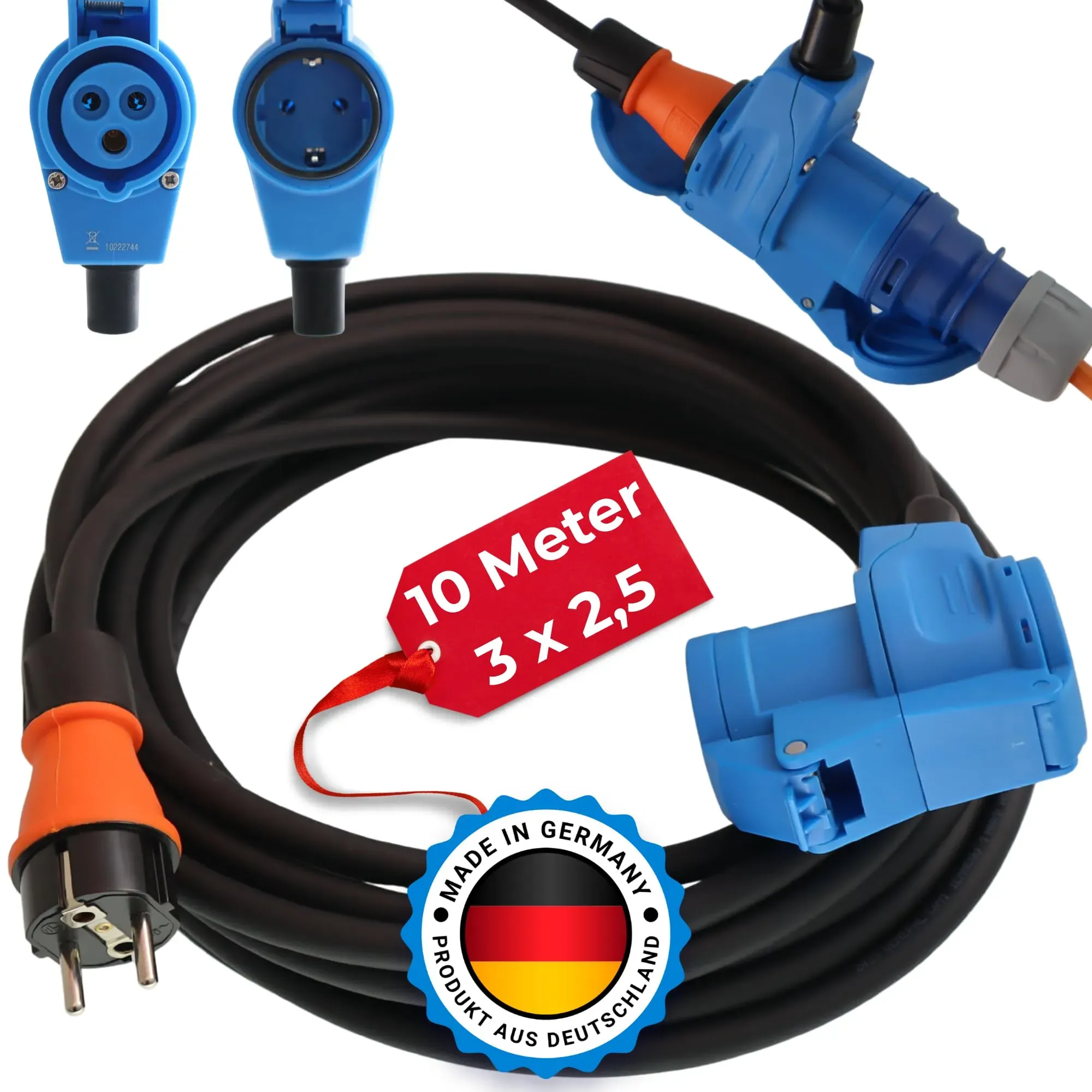 Verfügbarkeit: Auf Lager - Kategorie: Kabel & Leitungen - netbote24 - GTIN:4260516178228 - sehr hochwertiges und robustes Vollgummi Schutzkontakt Verlängerungskabel mit PCE Steckverbindern 16A/230V IP44: Fremdkörper- und spritzwassergeschützt, Einsatzbereiche: Außenbereich, Gartenarbeit, Veranstaltungstechnik, Landwirtschaft, Baustelle, Industrie, etc. flexible, widerstandfähige Gummischlauchleitung TITANEX H07RN-F 3G2,5 langlebige Vollgummi Schutzkontakt Steckverbinder der Marke PC electric Made in Germany (Einkauf der Einzelteile in Europa; Endmontage und Prüfung in Deutschland) - 59,90 Euro bei Amazon Marketplace CE - gefunden von billiger.de Ein empfehlenswertes Camping-Adapterkabel mit CEE-Winkelkupplung und integrierter Schuko-Steckdose, ideal für Wohnmobile und Caravans. ![]() ![]() netbote24 Camping Adapter 10m Mit CEE Winkelkupplung Und Integrierter Schuko Steckdose H07RN-F 3x2,5 Verlängerungskabel Strom Kabel Wohnmobil Wohnwagen Caravan Landstromanschluss