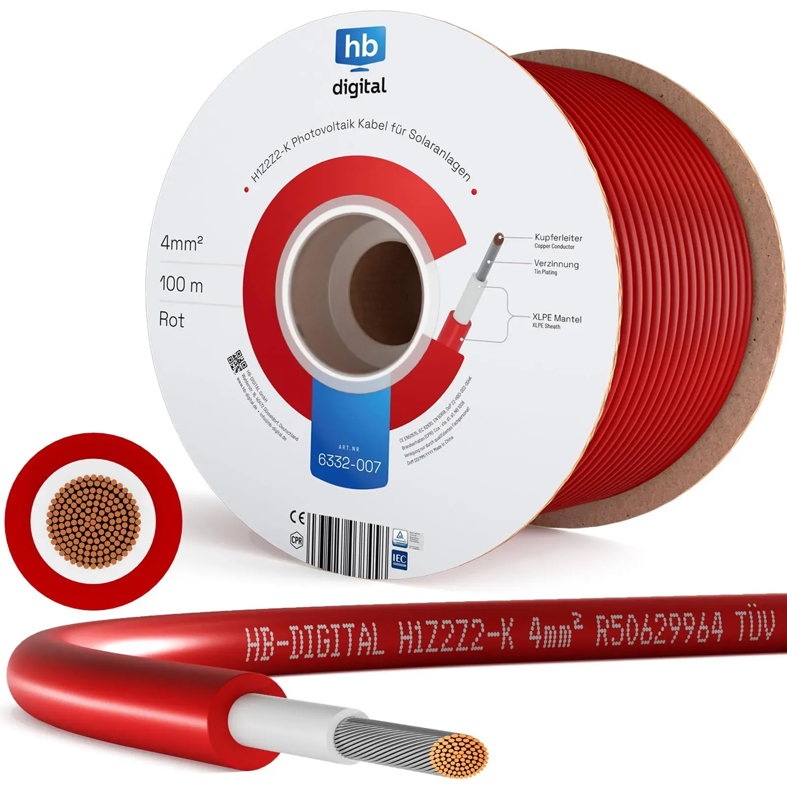 0.86 eur / 1m - Steckverbinder & Kabel Kabel & Leitungen Einzeladern, Drähte, Litzen Zwillingslitzen, Mehradrige Litzen@Kfz, Hobby & Haushalt Modellbahn Elektronik und elektronische Komponenten - - gefunden von Kelkoo Ebenfalls ein günstiges 4mm² Solarkabel von HB-DIGITAL in Rot, das von der Mehrwertsteuer befreit ist. ![]() ![]() HB-DIGITAL 100m Solarkabel H1Z2Z2-K inkl. 0% MwSt. gem. 12 Abs. 3 UStG - TüV Rheinland zertifiziertes - 4mm2 flexibel UV PV Kabel reines Kupfer 1500V DC für Solarpanel - Rot