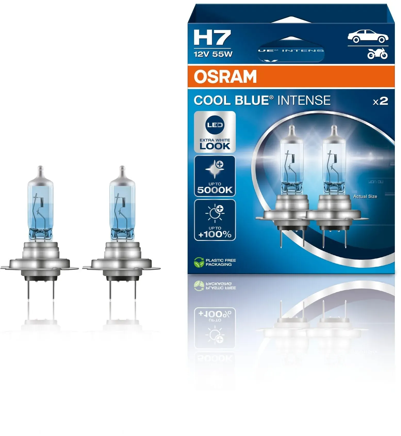 11 Händlerangebote bei billiger.de - Kategorie: Autolampen - Osram - NIGHT BREAKER LASER: Starke H7 Halogen-Scheinwerferlampen .Das Modell ist nicht universell kompatibel. Prüfen Sie vor dem Kauf die aktuelle Kompatibilitätsliste und weitere rechtliche Hinweise auf osram.de. Folgen Sie bitte dem dort beschriebenen Vorgehen vor und nach dem Einbau. Bis zu 150% helleres Licht für Ihr Auto dank einer innovativen Laserentschichtungstechnologie. Bis zu 150 m langer Lichtkegel für bessere Sichtverhältnisse und 20% weißeres Licht für eine moderne Optik. Sehen Sie weiter und reagieren Sie schneller mit einer leistungsstarken Halogen-Scheinwerferlampe. Premium Qualität Made in Germany/USA: Verfügbar als H1, H3, H4, H7, H8, H11, HB3, HB4. Umweltfreundliche, plastikfreie Verpackung mit gewohnter Qualität. - GTIN:4062172387590 Die Osram Cool Blue Intense H7 bietet einen modernen LED-Look mit bis zu 5.000K Farbtemperatur und 100% mehr Helligkeit. ![]() ![]() Osram COOL BLUE INTENSE H7, +100% mehr Helligkeit, bis zu 5.000K, Halogen-Scheinwerferlampe, LED-Look, Duo Box (2 Lampen)