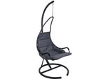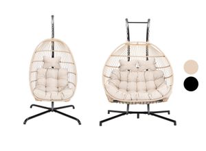 ProGarden - EAN: 8719202892130 - - solider Rahmen aus Stahlrohren - Tragkonstruktion aus bis zu 5 cm dicken Rohren - Stuhlhusse aus Polyester 600 D mit Weichschaumverstärkung - gute Reiß- und Abriebfestigkeit - gepolsterte Armlehnen auf jeder Seite des Sitzes - schützende Stahlbeschichtung schützt die Struktur vor Korrosion - Der Stuhl ist für einen langfristigen Aufenthalt im Freien geeignet - beständig gegen Witterungseinflüsse, UV-Strahlung und Temperaturschwankungen - kann in jeder Richtung relativ zur Struktur aufgehängt werden - freistehend, keine Ankerpunkte erforderlich - Ideal für Garten, Hinterhof, Terrasse, Balkon, Wintergarten und drinnen - Einfache Reinigung, der Bezug kann in der Waschmaschine gewaschen werden- Höhe: 195 cm - Gesamtbreite: 90 cm - Sitzbreite: 80 cm - Belastbarkeit: 140 kg - Marke: PROGARDEN Wunderschöner stilvoller Schaukelstuhl mit schwarzem Sitzkissen. Sichern Sie sich Ihren Lieblingsplatz. Komplett mit einem pulverbeschichteten Stahlgestell, an dem der Rattan-Korbstuhl sicher hängt, s - bei kaufland.de - aus Yadore Produktdaten ![]() Hängesessel COCOVA Outdoor mit Gestell schwarz/grau hjh LIVING