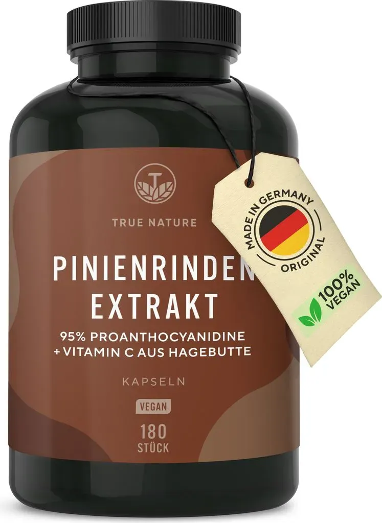 2 Händlerangebote bei billiger.de - Kategorie: Nahrungsergänzungsmittel - True Nature - TRUE NATURE Pinienrindenextrakt -Qualität und HochdosiertUnser hochdosiertes Pinienrindenextrakt von TRUE NATURE bietet Ihnen einen 32% OPC Gehalt pro Kapsel. Gewonnen aus der französischen Meereskiefer (Pinus pinaster), die bis zu 30 alt wird und bis zu 40 Meter in die Höhe wächst, ist unser Extrakt reich an Proanthocyanidinen, Naturstoffen mit hohem antioxidativen Potenzial.Qualität, die Sie spüren könnenDie Rinde von Pinus pinaster findet bereits seit langer Zeit Anwendung in der traditionellen chinesischen Medizin. Um die volle Pinienpower in eine Kapsel zu bringen, haben wir die Rinde extrahiert und den Pinienrindenextrakt auf 95% Proanthocyanidine standardisiert. Zudem haben wir die Rezeptur unserer Pinienrindenextrakt Kapseln abgerundet und wertvolles Vitamin C aus Hagebuttenextrakt hinzugefügt. Vitamin C trägt zu einer normalen Kollagenbildung für eine normale Funktion der Blutgefäße, einer normalen Funktion des Immunsystems und zum Schutz der Zellen vor oxidativem Stress bei.Vertrauenswürdige QualitätWir glauben, dass die Qualität des Rohstoffs einen großen Einfluss auf die Qualität des Endprodukts hat. Deshalb arbeiten wir nur mit vertrauenswürdigen Lieferanten zusammen, um sicherzustellen, dass unser Pinienrindenextrakt den höchsten Qualitätsstandards entspricht. Unsere Kapseln sind frei von unnötigen Zusatzstoffen.Einfache EinnahmeDie empfohlene Tagesdosis beträgt eine ... ![]() ![]() True Nature Pinienrindenextrakt Kapseln - 180 Kapseln 660mg - mit 95% Proanthyocyanidine + Vitamin C aus Hagebutte (trägt zur normalen Funktion des Immunsy...