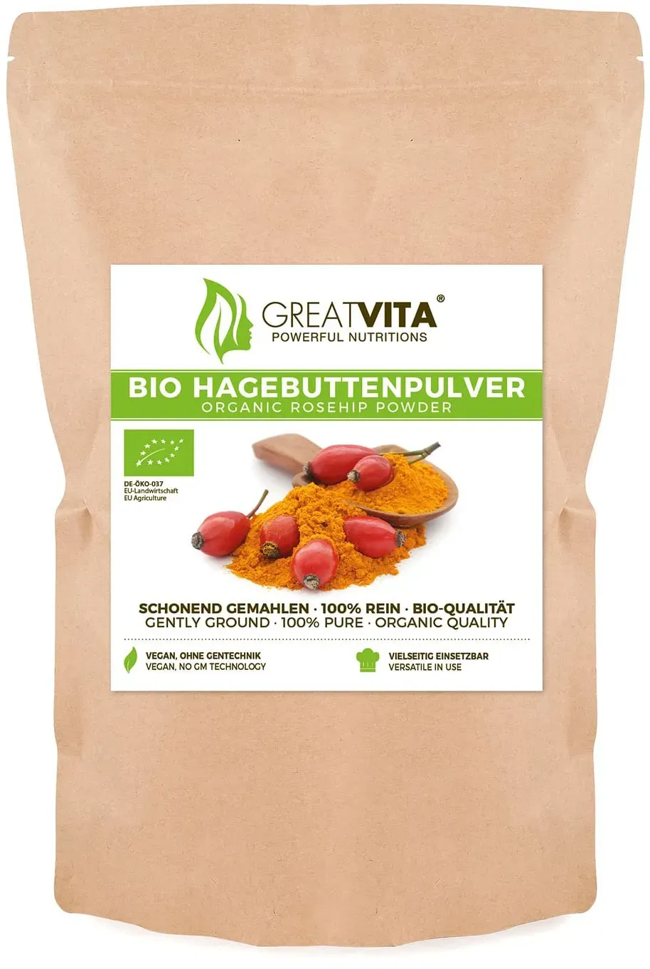 Kategorie: Nahrungsergänzungsmittel - greatvita - GTIN:4057824609915 - DER HEIMISCHE SUPERFOOD. Unser Bio Hagebuttenpulver ist reich an den Vitaminen A, C, E und K. Außerdem versorgt es Dich mit Calcium, Mangan, Magnesium, Kupfer und Phosphor. SCHONEND ZUBEREITET. Die Früchte für unser Bio Hagebuttenpulver werden bei nur 40-50 C getrocknet und dann schonend gemahlen, damit alle Nährstoffe auch bei Dir ankommen. FRUCHTIGER VIELSEITER. Mit seinem fruchtigen Geschmack und seiner leichten Säurenote, ist unser Bio Hagebuttenpulver der ideale Zusatz für Deine Shakes, Smoothies oder Säfte. NATURAL HEALTH. Wir stehen auf Bio! Unser Bio Hagebuttenpulver stammt ausschließlich aus biologischem Anbau. Bei Deiner Gesundheit und Deinem Genuss machen wir keine Kompromisse. - 7,99 Euro bei Amazon Marketplace Health & Personal Care - gefunden von billiger.de Dieses 1kg Organic Hagebuttenpulver von Balkan Herbs ist eine kostengünstige Option für eine groÃ?e Menge und wird als naturrein beworben. ![]() ![]()