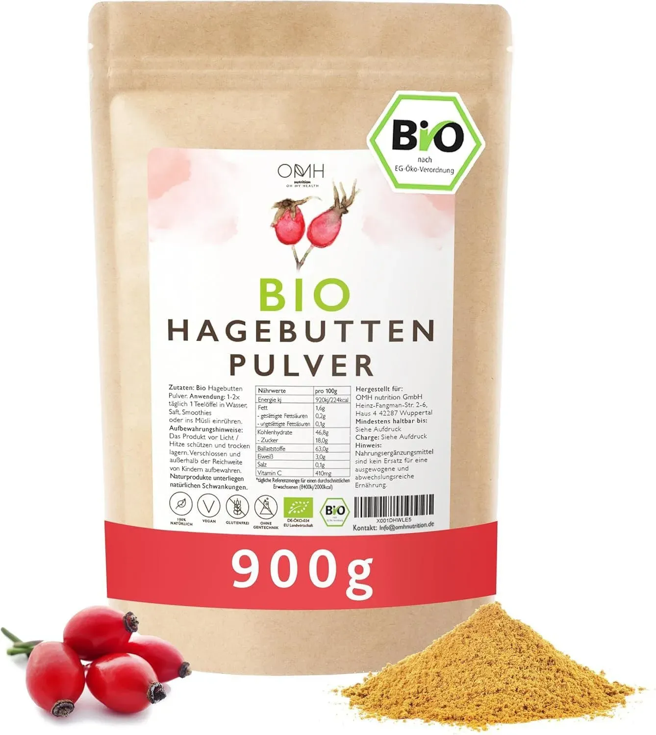Kategorie: Nahrungsergänzungsmittel - OMH nutrition OH MY HEALTH - GTIN:4260734410643 - HAGEBUTTENPULVER BIO QUALITäT 900G / 0,9kg. Wir haben die allerhöchsten Qualitätsansprüche an unsere Produkte. Unser Bio Hagebutten Pulver 1000g + 250g gratis ist von Natur aus vegan, glutenfrei und laktosefrei. Es enthält keine Zusätze und ist sehr streng auf Schadstoffe kontrolliert. Die Früchte unserer Hagebutten stammen von Bio Bauern aus Europa und werden in Deutschland schonend gemahlen. . GANZE FRUCHT Wir verwenden die ganze Frucht und mahlen diese bei unter 40 Grad. Die Kerne der Frucht werden nicht entölt und enthalten somit alle wichtigen Nährstoffe. Hagebutte enthält von Natur aus viel natürliches Vitamin C, Vitamin B und Provitamin A. Sie hat antioxidative Eigenschaften, enthält Fettsäuren und Mineralstoffe. Einfache Anwendung:täglich in Müsli, Joghurt, Saft oder Smoothie mixen oder als Tee genießen. UNSER VERSPRECHEN Jede Charge Bio Hagebutten Pulver wird stets streng kontrolliert. Jeder Beutel wird liebevoll und handverpackt auf den Weg zu dir gebracht. Wir arbeiten mit GMP zertifizierten Betrieben. ZU DEINER ZUFRIEDENHEIT Wir hoffen, du liebst unser Hagebutten Pulver genauso wie wir! Solltest du dennoch nicht zufrieden sein oder Hilfe benötigen, melde dich jederzeit bei uns und wir finden eine Lösung. Denn wir sind erst glücklich, wenn du es bist. - 14,95 Euro bei Amazon Marketplace Health & Personal Care - gefunden von billiger.de Dieses 1,5 kg Bio-Hagebuttenpulver von Biojoy ist eine sehr groÃ?e Packung für Vielverbraucher und bietet einen attraktiven Kilopreis. ![]() ![]()