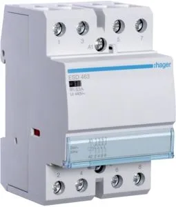 Kategorie: Sonstige Elektroinstallationsartikel - Hager - GTIN:3250611610878 - Hochwertige Material Hochwertige Abmessungen Robustheit Flexible Gestaltung - 76,90 Euro bei Amazon Marketplace Automotive - gefunden von billiger.de Dieser Schütz bietet eine hohe Schaltleistung für anspruchsvollere Anwendungen. ![]() ![]() Hager ESC463 Schütz, 4-pol., 63A, 4 Schließer, 230V
