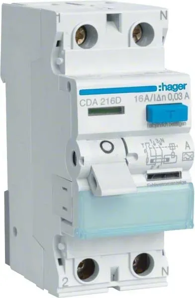 Auf Lager, Lieferzeit 3-4 WerktageHager CDA216D FI-Schutzschalter A 2polig 16A 0.03A 230V