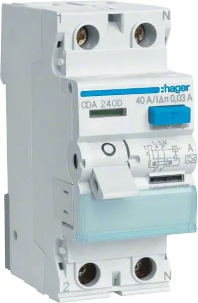 Sofort lieferbar Lieferzeit: 1-3 ArbeitstageHAGER FI-Schutzschalter CDA240D 2-polig 40A 30mA Typ A