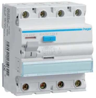 Hager - EAN: 3250611621577 - Hager FI-Schutzschalter CDF525D | 2-polig | 25A | 30mA Typ F | 10kA | Fehlerstromschutzschalter | weiß - bei smartgoods.de - aus Yadore Produktdaten Dieser selektive FI-Schutzschalter mit 300mA und 4-poliger Ausführung ist für den Einsatz in Hauptverteilungen zur Selektivität im Fehlerfall. ![]() ![]() Hager FI-Schutzschalter CPA463D, 63A/0.3, Typ A, 4polig, selektiv
