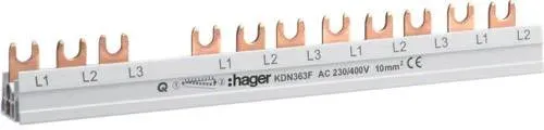 14 Händlerangebote bei billiger.de - Kategorie: Sonstige Elektroinstallationsartikel - Hager - Hager KDN363F Phasenschiene 3 polig mit Gabelanschluss 10mm2 63A 12 Module - GTIN:3250613741068 Dieses Angebot bietet die Phasenschiene mit detaillierten Spezifikationen zu einem attraktiven Preis. ![]() ![]()