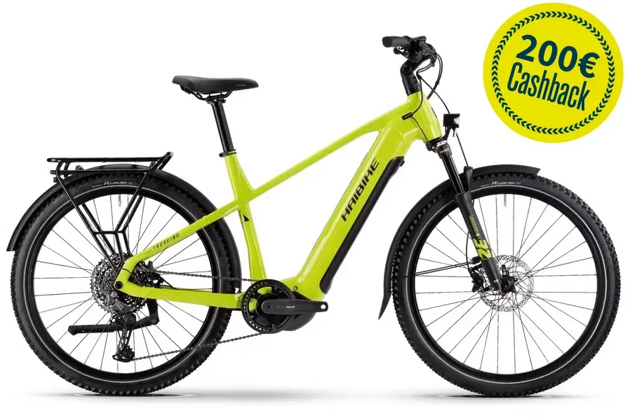 Haibike - EAN: 4054624152450 - Unser Haibike TREKKING 5 ist ein echter Allrounder, mit dem du alles machen kannst: zur Arbeit fahren, eine Feierabendrunde drehen oder eine mehrtägige Tour mit Gepäck starten. Was auch immer du vorhast: Der neue Yamaha PW-S2 Motor bietet dir die passende Unterstützung und mit 720 Wh Akkuleistung genügend Reserven auch für längere Touren. Zuverlässige Schalt- und Bremskomponenten von Shimano sowie 100 mm Federweg vorne sorgen für Sicherheit und Komfort. Und mit den grobstolligen Reifen bist du auch für leichte Offroad-Einsätze bestens gewappnet. Die StVZO-konforme Ausstattung bestehend aus Gepäckträger, Beleuchtung und Schutzblechen runden dieses vielseitige Trekking eBike ab. - bei fahrrad24.de - aus Yadore Produktdaten Dieses Angebot ist mit 1709.1 Euro eines der günstigsten für ein Haibike Trekking 5 High Modell aus dem Jahr 2025. ![]() ![]() Haibike Trekking 5 - High 2025 - lime/black glänzend