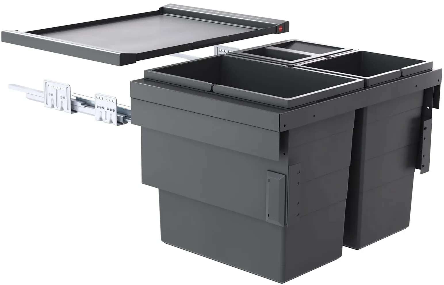 Gewöhnlich versandfertig in 2 bis 3 TagenHailo Abfallsammler Auszug 3608631 | für 60cm Unterschrank | Cargo Synchro 3fach 54 Liter | Dunkelgrau