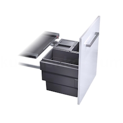 Hailo - EAN: 4007126368300 - Für den 60 cm breiten Unterschrank in Ihrer Küche ist ein neues synchronisiertes Abfallsammlerauszug-System mit 3 Inneneimern und einem zusätzlich ausziehbaren Tablarboden erhältlich. Die Laufeigenschaft des Unterschrank Auszuges zeichnet sich besonders durch Stabilität, leisen und exaktem Gleichlauf aus. Die mit diesem Auszug herausfahrbaren Inneneimer besitzen zur sicheren Entnahme und dem Verklemmen von Müllbeuteln einen Doppelhenkel. Als zusätzliche Besonderheit deckt ein Auszug das gesamt Mülltrennsystem ab, auf dem durch die Antirutsch-Beschichtung darauf befindliches an Ort und Stelle verbleibt. Ein rundum gelungenes Müllsystem in ebenfalls neuer slate-grey Farbgebung.Information zum Produkt:Abfallsammelsystem Synchro mit 3-fach TrennungMüllsammler mit 54 Liter FassungsvermögenEimer mit stabilen ausfahrbaren SystemdeckelDeckel antirutschbeschichtet als zusätzliche Ablageneuer synchronisiert gedämpfter Vollauszugin einer Schrankbreite von 60 cm montagefähigeinfache und schnelle Montage nach beiliegender SchabloneMaße und Details:Hersteller: HailoSchrankbreite: 60cm (außen)Gesamtvolumen: 54 LiterMaterial: Kunststoff / MetallEimer: 28, 13, 13 + 1 BiodeckelFarbe: Slate-Grey einheitlichAuszugart: überauszug synchronisiert Montageart: Seitenwand- und FrontmontageProdukt-Maße: B 562-568 x T 400 x H 424 mmHinweis:Die Lieferung umfasst den Abfallsammler mit Auszugtechnik inclusive Montageanleitung. Möbel und Möbeltür werden zum besseren ... ![]() ![]() Hailo AS Cargo Synchro 600 3608631 Einbau Abfallsammler