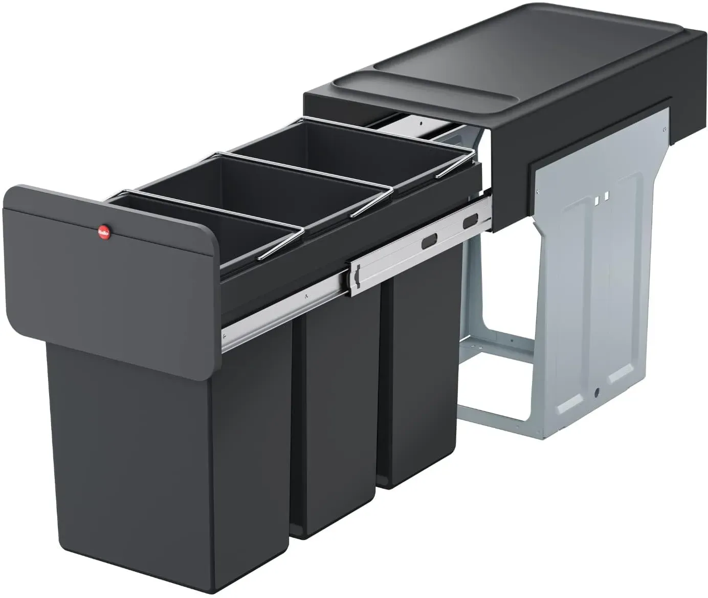 Zustand: Neu - Mülltrennsysteme - Hailo - 3666131 - EAN: 4007126366665 - Maximale Flexibilität: Drei 10-Liter Inneneimer mit einem Gesamtvolumen von 30 Litern - ideal für effiziente Mülltrennung und maximale Stauraum-Ausnutzung - mit praktischer Ablagemulde im Deckel Sauber und hygienisch: Die herausnehmbaren grauen Kunststoff-Inneneimer mit Tragegriff ermöglichen eine leichte Entnahme des Mülls - die Müllbeutel sind am Eimerrand festklemmbar Einfache Montage: Der kompakte Mülleimer mit dunkelgrauem Kunststoff-Deckel kann in Drehtür-Unterschränken mit nur 4 Schrauben und ohne Messen montiert werden - egal ob links, rechts oder mittig Kompatibilität: Geeignet für Küchenschränke mit Drehtür und einer Breite ab 30 cm sowie einer Tiefe von mindestens 48,2 cm - ideal für den Einbau unter der Spüle Hergestellt in Deutschland: Einbaumülleimer für die Küche in platzsparender Form - Breite: 25,1 cm, Höhe: 40 cm, Tiefe: 48,2 cm - Produktgewicht: 7,1 kg - Auszugsart: Vollauszug - Verkäufer: S&O Handelsgesellschaft mbH im amazon.de Marketplace ![]() ![]() Hailo EcoLine Design Trio L Einbau-Mülltrennungs-System 3x10 Liter - Trio-Mülleimer mit Vollauszug - Stahlblech - schwarz - ab 30 cm Schrankbreite