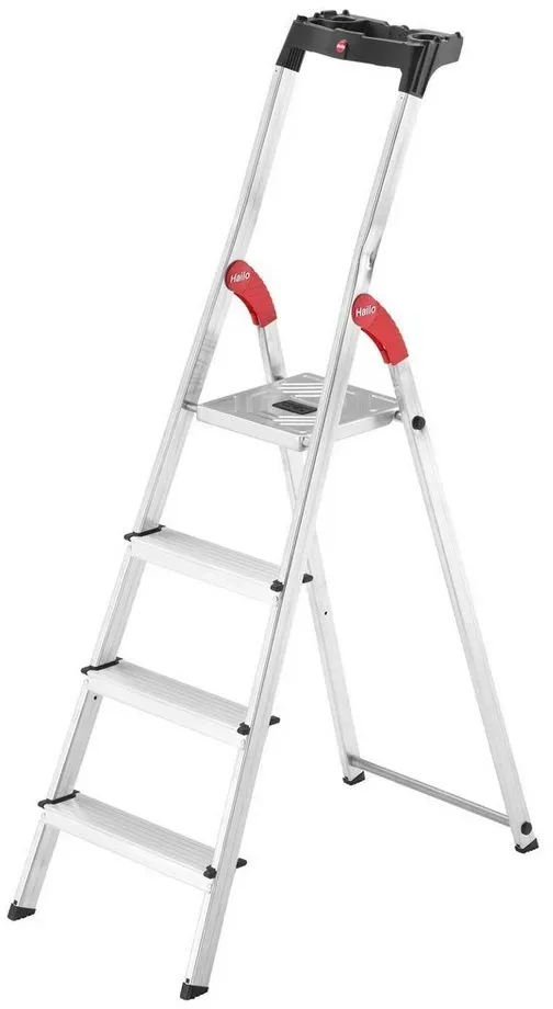 Kategorie: Leitern - HAILO - GTIN:4007126024022 - mit Schale zur Ablage von Werkzeugen und Kleinteilen|verzinkte Stahl-Plattform mit Anti-Rutsch-Riffelung|geeignet für 'EasyClix'-Wechselfüße|Alu-Stufen mit Anti-Rutsch-Riffelung|Stufenabstand 21,8 cm; Eine sichere Leiter ist im Haushalt unerlässlich - ob zum Anstreichen und Tapezieren, zum Auswechseln von Glühbirnen, zum Anbringen von Bildern oder einfach zum Fensterputzen. Die Aluminium-Sicherheits-Haushaltsleiter L60 von Hailo besitzt 4 Stufen und ist mit einer maximalen Arbeitshöhe von 285 cm bestens für den Hausgebrauch geeignet. Die 8 cm breiten Alu-Stufen sowie die verzinkte Stahlplattform sind mit einer Anti-Rutsch-Riffelung ausgestattet und gewährleisten einen sicheren Halt. Zusätzliche Sicherheit bieten die rutschsicheren Steckfüße. Dank der Multifunktions-Ablageschale sind alle benötigten Utensilien stets griffbereit und lästiges Auf- und wieder Absteigen wird überflüssig. - 57,99 Euro bei toom.de - gefunden von billiger.de Dieses Angebot ist das günstigste im gesamten Vergleich und somit ideal für preisbewusste Käufer. ![]() ![]() HAILO L60 StandardLine - 4 Stufen