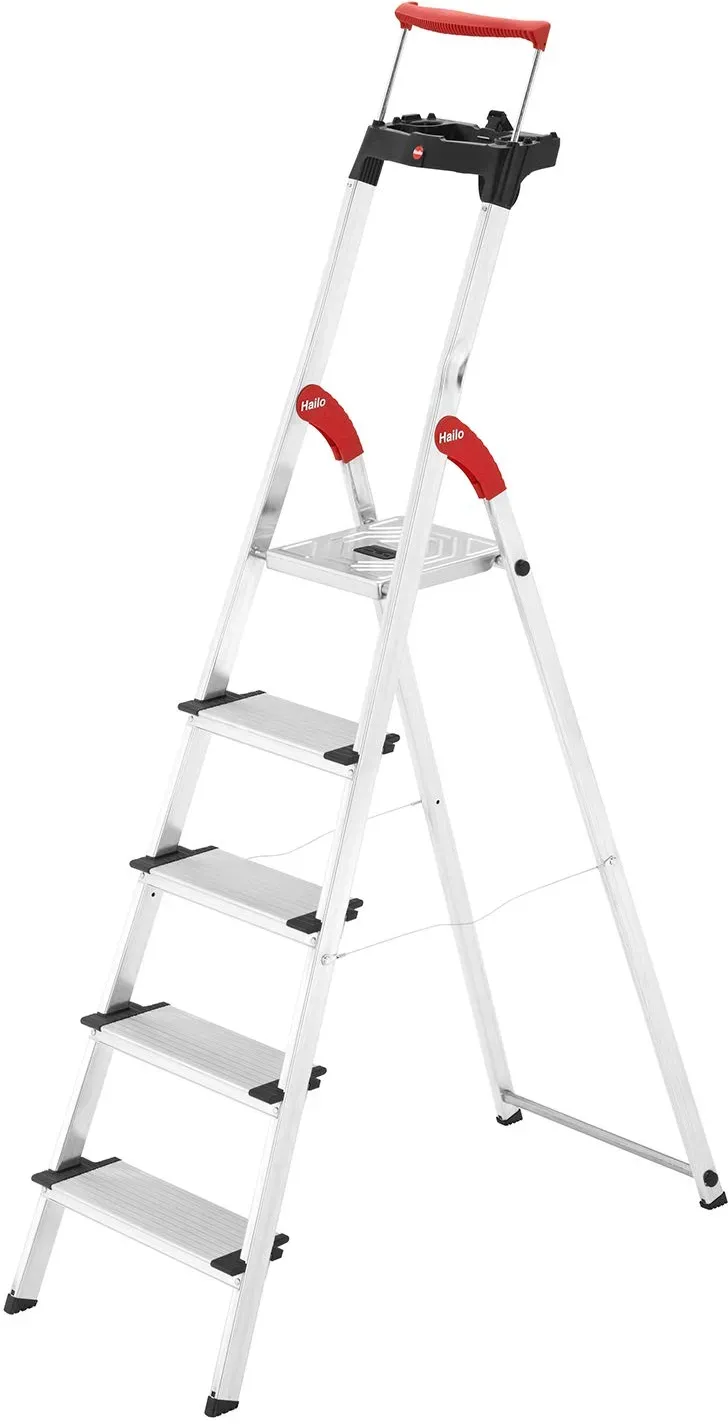 ![]() ![]() Hailo L85 ComfortLine Alu-Sicherheits-Stehleiter | 5 XXL-Stufen belastbar bis 150 kg | Tiefe Standfläche & Haltegriff |Stehleiter mit Ablage | Aluleiter Made in Germany | Leiter rostfrei | Silber