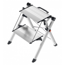 EAN: 4007126043108 - Einfach zu verstauen: zusammengeklappt nur 6,5 cm breit. Große Aluminium-Stufen mit Anti-Rutsch-Riffelung für optimalen Steh-Komfort. Tragegriff mit integrierter Entriegelungsfunktion. Kunststoff-Füße mit Soft-Grip-Sohle für optimale Stand- und Rutschsicherheit auf verschiedenen Fußböden, wie z.B. Parkett, Teppichböden und Fliesen. - bei conrad.de - aus Yadore Produktdaten ![]() Hailo MK80 Trittleiter 4310-100 ComfortLine 2stufig Aluminium