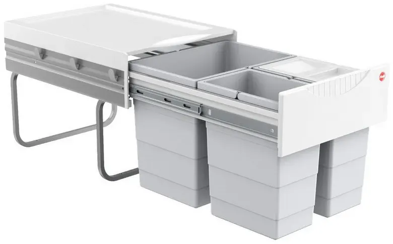 lieferbar-in 4-5 Werktagen bei dirHailo Einbaumülleimer Hailo Abfallsammler 3642131 Raumspar-Tandem 2x 8,5 + 18 Liter hellgrau grau