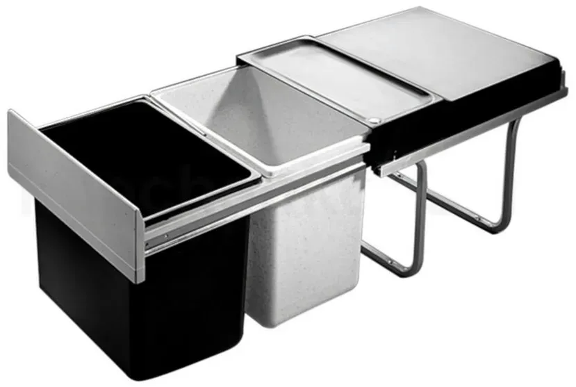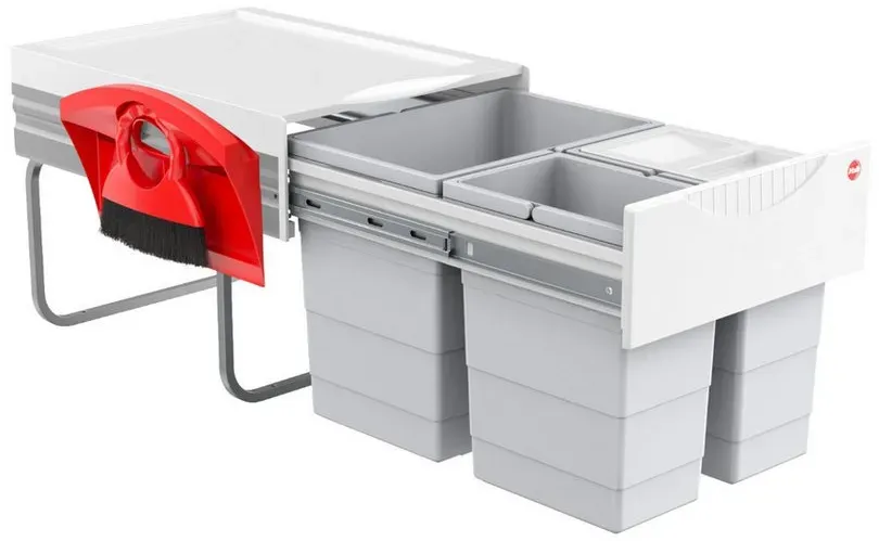 Kategorie: Mülleimer - HAILO - GTIN:4004519176559 - 4-fach Mülltrennung Praktischer Einbau-Abfallsammler mit 4 herausnehmbaren Behältern 8,5 Liter für hygienische und effiziente Abfalltrennung direkt unter der Arbeitsfläche. Vollauszug-System Teleskop-Vollauszug ermöglicht komfortables Herausziehen des gesamten Mülltrennsystems, selbst bei voll gefüllten Behältern. Raumsparendes Design Passt in alle Unterschränke ab 40 cm Breite mit Drehtür; nutzt den Platz im Küchenschrank optimal und schafft Ordnung unter der Spüle. Biomüll-Deckel inklusive Ein separater Deckel zur Geruchsvermeidung bei Biomüll ist im Lieferumfang enthalten ideal für eine hygienische Entsorgung. Einfache Bodenmontage Schnelle und unkomplizierte Montage auf dem Schrankboden; Montagematerial und Anleitung sind im Lieferumfang enthalten. Hochwertige Materialien Behälter aus robustem, pflegeleichtem Kunststoff in Hellgrau, Metallteile in Silberoptik für ein modernes und funktionales Küchendesign. Praktische Extras Inklusive drei seitlichen Haken zur Aufbewahrung von Müllbeuteln oder Zubehör; optimale Ergänzung für moderne Küchenorganisation. - 117,32 Euro bei Amazon Marketplace Automotive - gefunden von billiger.de Dieses Modell bietet eine 2x 10 + 20 Liter Trennung und ist eine gute Option für größere Haushalte. ![]() ![]()