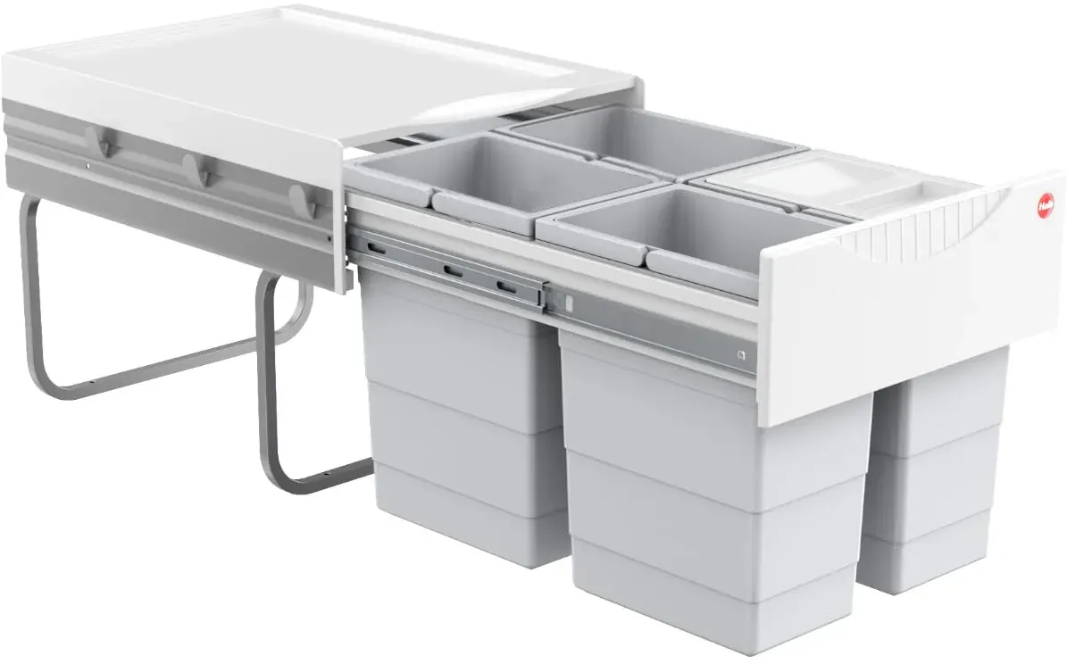 Gewöhnlich versandfertig in 9 bis 10 TagenHailo Raumspar Tandem 3644731 Einbau-Mülltrenner mit 3 Fächern - Küchen-Mülleimer zum Einbauen im Unterschrank - 12 und 2x 8 L - Abfalleimer mit Vollauszug für Drehtür-Schränke ab 50 cm - Hellgrau