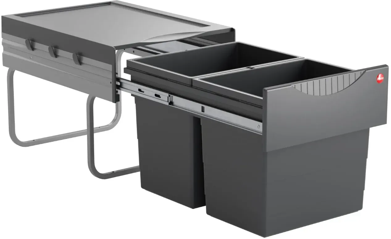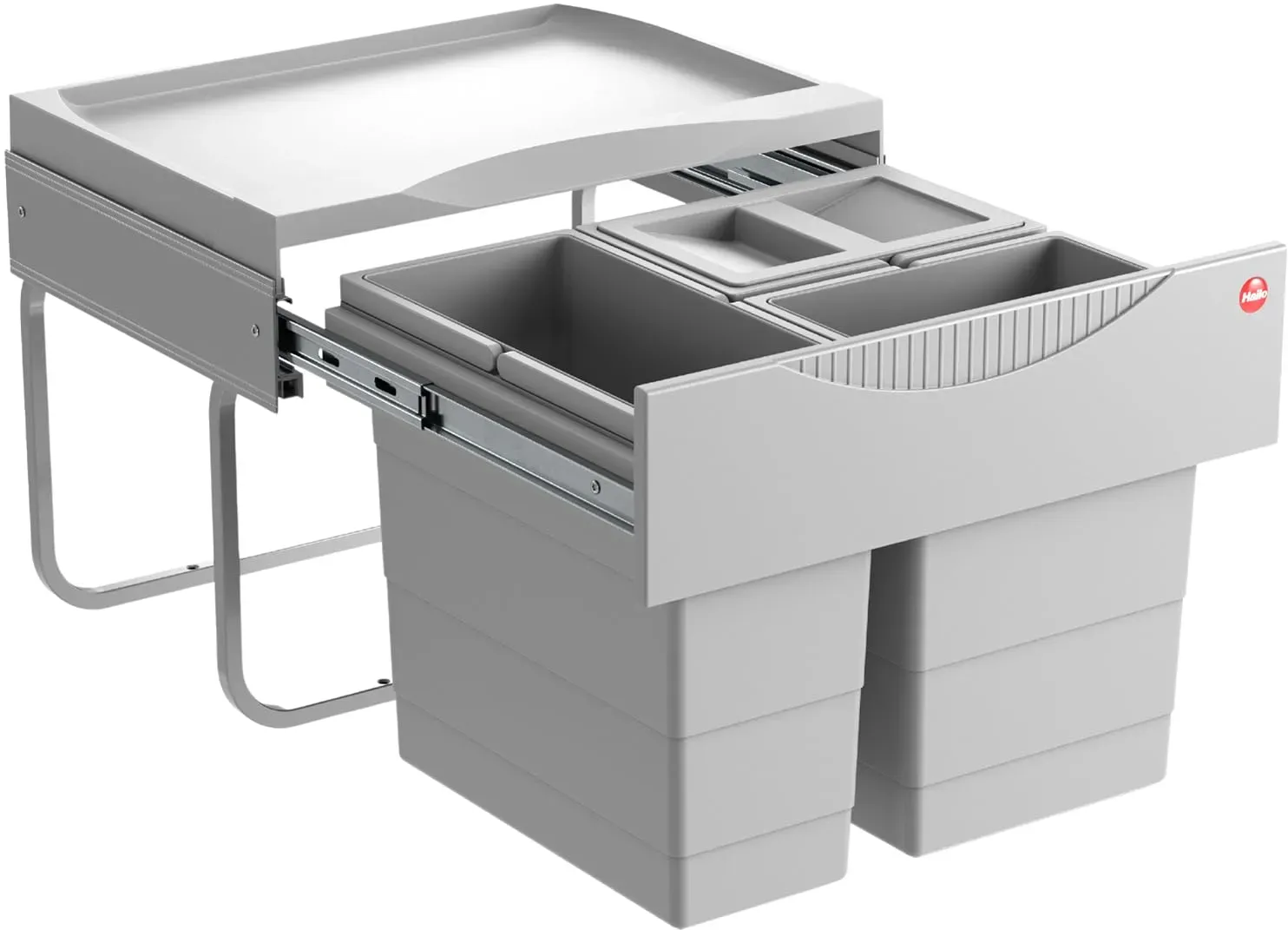 lieferbar-in 4-5 Werktagen bei dirHailo Einbaumülleimer Hailo Abfallsammler 3642231 Mülleimer Raumspar-Tandem-H 2x 10 + 20 Ltr grau
