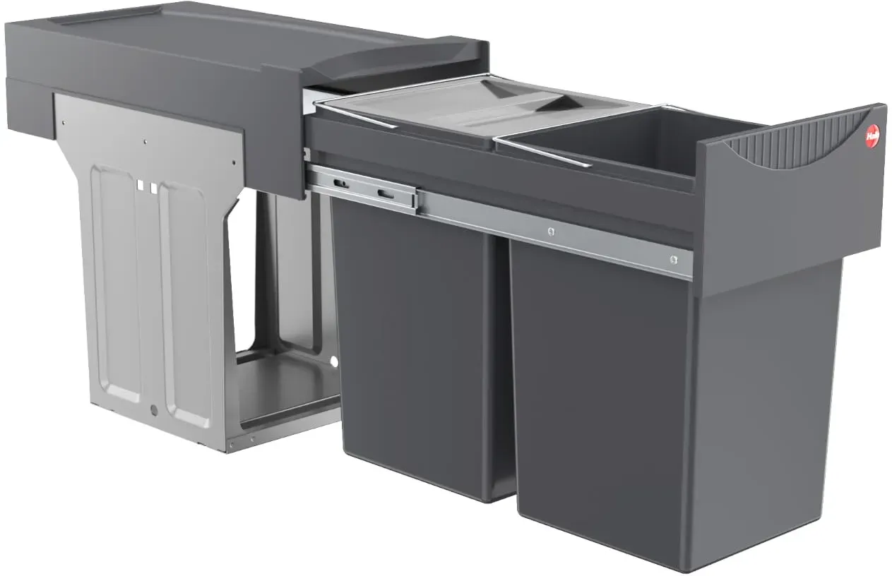 lieferbar-in 4-5 Werktagen bei dirHailo Einbaumülleimer Hailo Abfallsammler 3666102 TA Swing Tandem 2x 15 L PlusBioDeckel grau