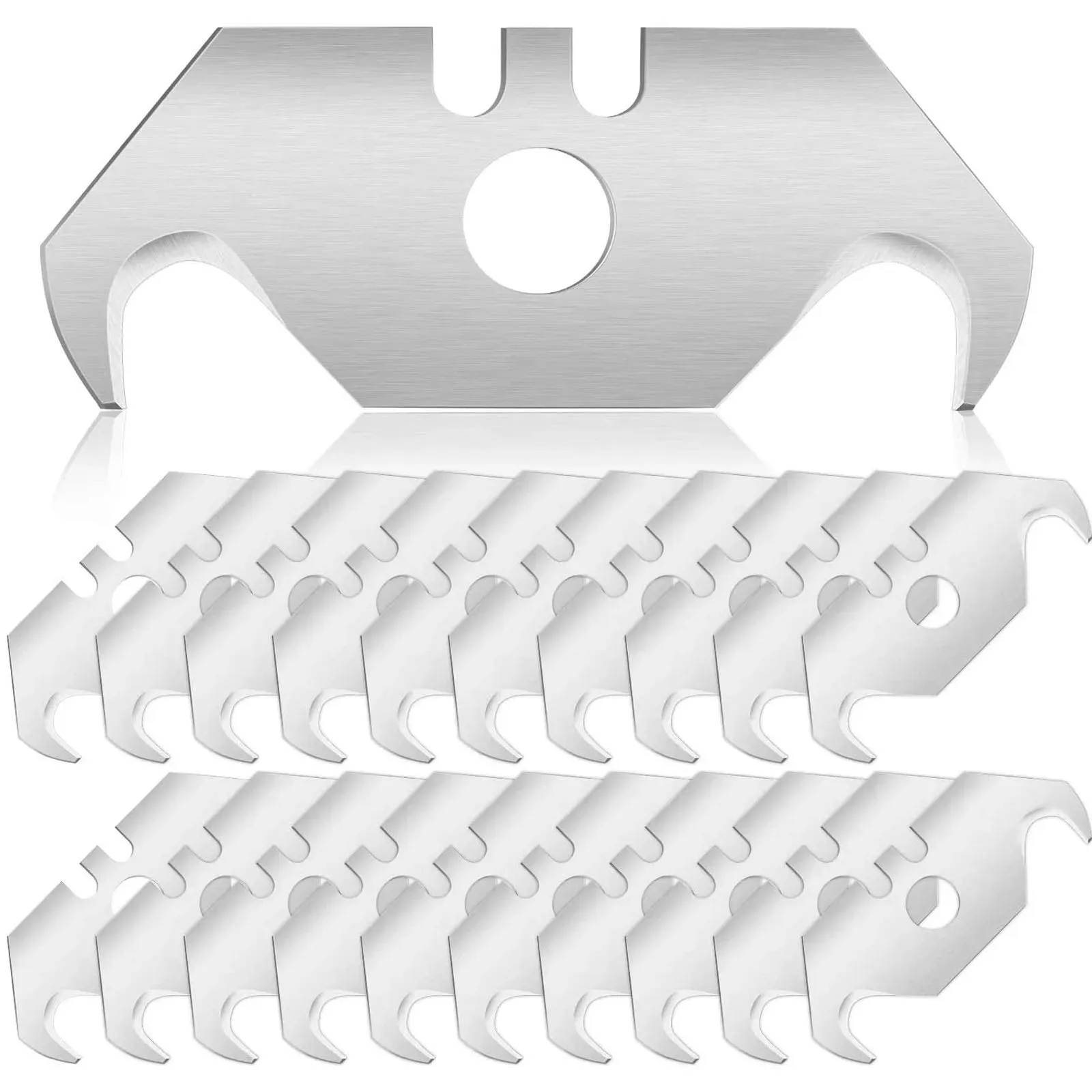 Verfügbarkeit: Auf Lager - Kategorie: Rasierklingen - Mako - GTIN:4002168816390 - hochwertiger Schwedenstahl eisgehärtet 5 Hakenklingen im Sicherheitsspender Größe: 0,65 mm - 7,90 Euro bei Amazon Marketplace CE - gefunden von billiger.de Dieses 100-Stück-Set von varivendo bietet eine große Menge an Haken-Ersatzklingen zu einem fairen Preis für Vielverbraucher. ![]() ![]() varivendo Hakenklinge 100 Haken-Ersatzklingen (Set, 100-St., Haken-Ersatzklingen), Cuttermesserklingen Cutterklingen Ersatzklingen Hakenklingen silberfarben