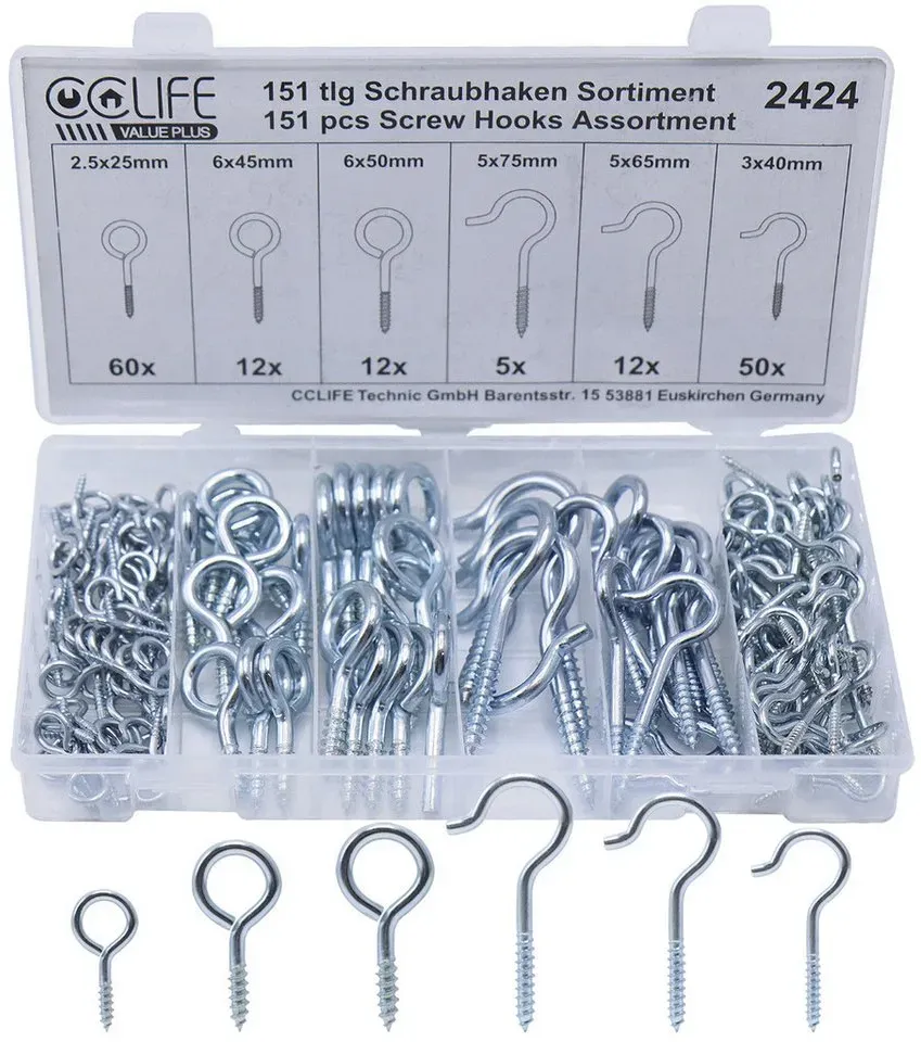 ![]() ![]() CCLIFE Schraubhaken 151 tlg Set Haken Hakenschrauben Schraubhaken Sortiment Deckenhaken, (Packung, 151 St) silberfarben