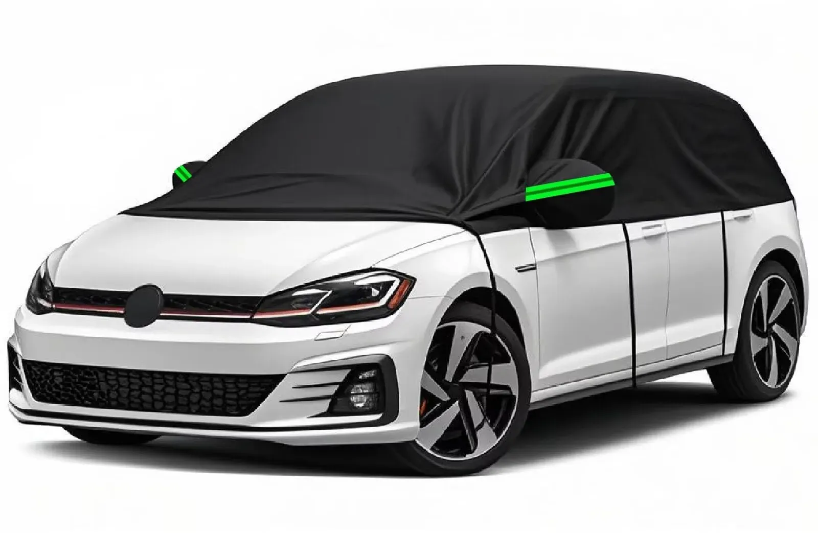 Gewöhnlich versandfertig in 2 bis 3 TagenHalbgarage für Auto für VW Golf 7 2012-2019,Hagelbeständige Halbe Autoabdeckung, Nachtwarnung, Reiß- und Kratzfest,Leicht und Langlebig