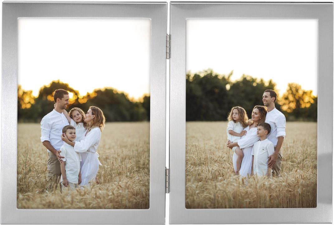 Auf Lager Versand durch AmazonHama Bilderrahmen 13x18 (2er Bilderrahmen, Bilderrahmen mehrere Bilder, Fotorahmen, Portraitrahmen, Hochformat, Querformat, zum Hängen, zum Hinstellen, Doppelrahmen, 2X Bildformat 13 x 18 cm) Silber