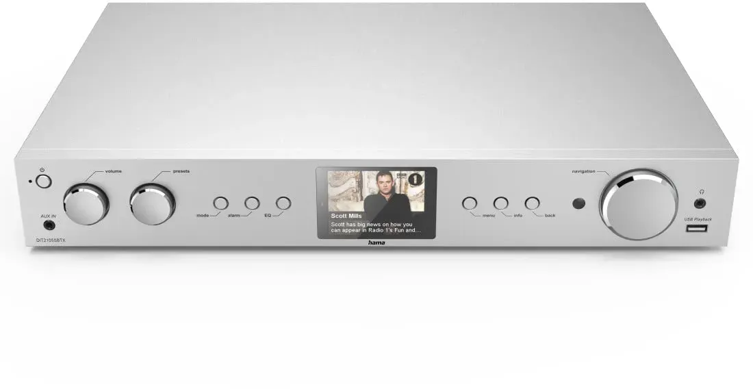 keine Angabe Gewöhnlich versandfertig in 4 bis 5 TagenHama DAB Tuner HiFi Digitalradio Internet Radio FM Tuner Bluetooth Tuner HiFi Internetradio Digitalradio FM WLAN Stereo Receiver Spotify Amazon Music Fernbedienung USB AUX Wecker DIT2105SBTX Silber