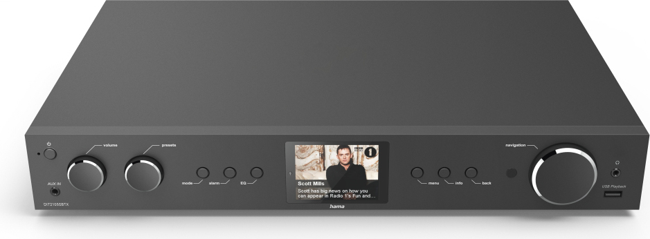 4 Händlerangebote bei billiger.de - Kategorie: Tuner - Hama - - Digital- und Internetradio zum Empfang von Audiosignalen über FM, DAB/DAB+, Internetradio - Dank dem Bluetooth-Receiver (RX) können Sie die Musik von Smartphone, Tablet, Notebook und PC unkompliziert auf Ihr Gerät streamen - Durch den integrierten Bluetooth-Transmitter (TX) laufen Ihre Beats auf allen Bluetooth-fähigen Geräten z.B. Kopfhörer oder Lautsprecher - Spotify-Lieblingsmusik auch auf dem Radio genießen: Spotify-Connect-Unterstützung für Zugriff auf Millionen Songs und bereits erstellte Playlists - Amazon Music auch auf dem Radio genießen: Hinterlegen Sie Ihren Amazon-Account auf dem Radio für Zugriff auf Millionen Songs und bereits erstellte Playlists - USB-Anschluss Typ A zum Laden und zur Wiedergabe von externen Datenträgern, z.B. USB-Stick, MP3-Player - Erstklassiger Empfang, egal wo Sie sind: Schließen Sie am F-Anschluss verschiedene Antennen an, um den Empfang zu optimieren - Hohe Bedienfreundlichkeit: Steuern Sie Ihre Geräte bequem vom Sofa aus - per Smartphone oder Tablet mit der UNDOK-App, per Fernbedienung oder direkt am Gerät Hama DIT2105SBTX, Persönlich, Digital, DAB, DAB+, FM, TFT, 7,11 cm (2.8'), 802.11a, 802.11b, 802.11g, Wi-Fi 4 (802.11n) Hama DIT2105SBTX. Radiotyp: Persönlich, Tunertyp: Digital, Unterstützte Bänder: DAB, DAB+, FM. Display-Typ: TFT, Bildschirmdiagonale: 7,11 cm (2.8'). WLAN-Standards: 802.11a, 802.11b, 802.11g, Wi-Fi 4 (802.11n). Kopfhörer-Anschluss: 3,5 mm, USB-Stecker: ... ![]() kaufland.d e HAMA Radio DAB+ Intern. FM BT DIT2105SBTX Schwarz 00054251