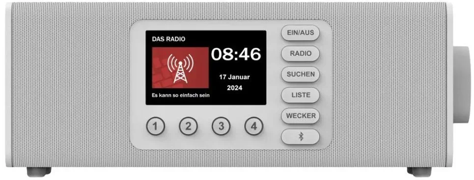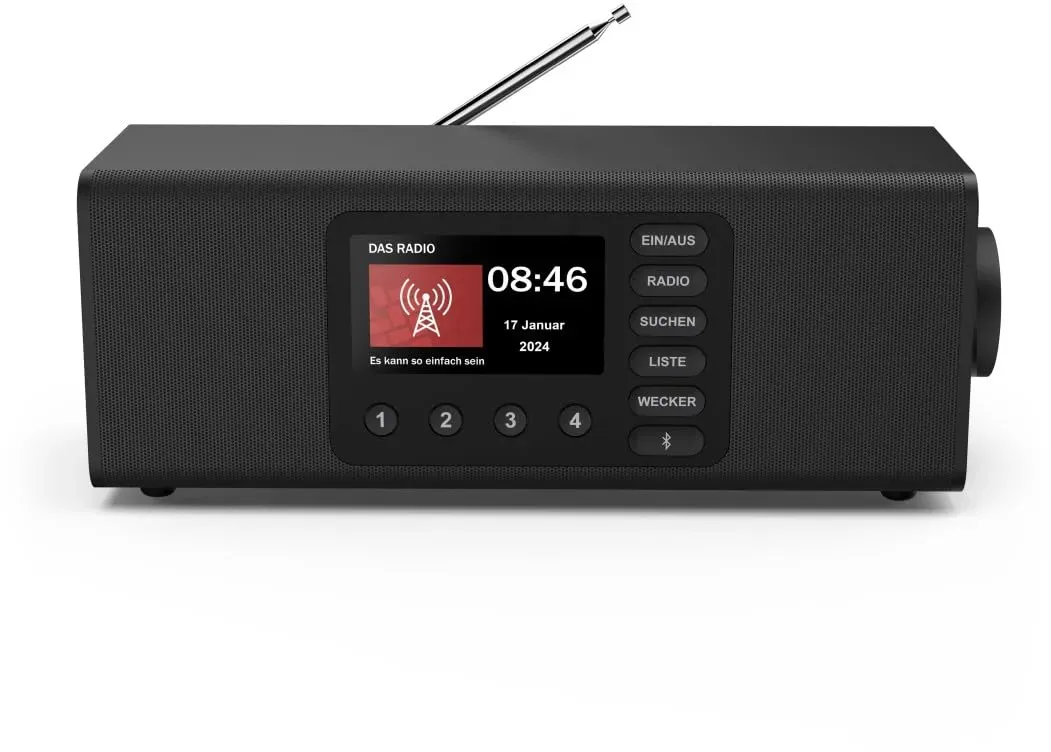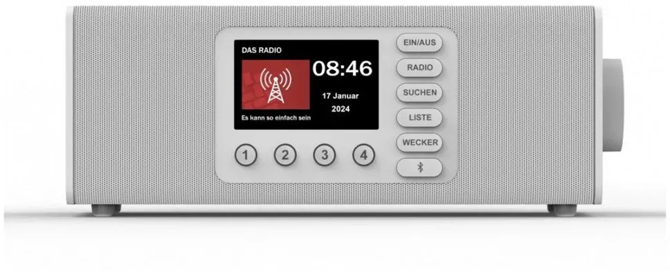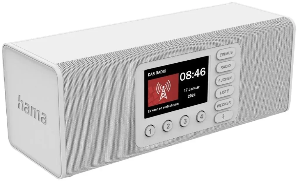 Zustand: Neu - Radiowecker & Uhrenradios - Hama - 00054298 - EAN: 4007249542984 - Benutzerfreundliches DAB-Radio mit einfacher Bedienung: große Tasten und Drehregler, deutlich lesbare Beschriftung, große Buchstaben, extragroßes Display und einstufige Menüführung - geeignet auch als Seniorenradio oder als kleines Radio für Kinder Radio mit Bluetooth: unkompliziert von Tablet, Smartphone, Notebook und Co. eigene Lieblingsmusik, Podcasts oder Nachrichten streamen - Radio auch als Bluetooth-Box verwendbar Stereo-Radio für kräftigen Sound: innovatives Soundsystem mit zwei Lautsprechern sorgt für ein raumfüllendes und kristallklares Klangerlebnis - beeindruckende Tonqualität und Intensität Radiowecker mit zwei Alarmspeicherplätzen: mit dem Lieblingssender in den Tag starten - für beide Weckzeiten einstellbar, ob der Wecker nur einmalig, täglich, an Werktagen, am Wochenende oder nur an speziellen Tagen aktiv sein soll Lieferumfang: 1x Digitalradio 'DR2002BT' mit Beschriftung und Menü auf Deutsch, 1x Netzteil, 1x Bedienungsanleitung (Deutsch) - bei Amazon.de Dieses weiße Digitalradio für 120.86 Euro ist eine gute Option für Nutzer, die eine helle Farbvariante bevorzugen. ![]() ![]() Hama Digitalradio DR2002BT, FM/DAB/DAB+/Bluetooth RX, Radiowecker, Stereo, WS (00054299) - Weiß