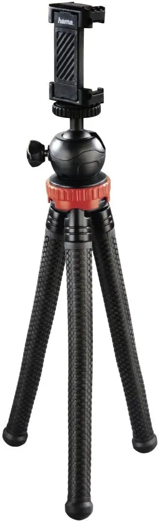 Kategorie: Handy-Gadgets - Hama - GTIN:4007249046499 - Kompaktes Handystativ für Smartphones mit 5,8 bis 8,5 cm Breite: Tischstativ für wackelfrei Aufnahmen, neigbare und um 360 Grad drehbare Handyhalterung Ministativ wird eingeklappt zum Selfie-Stick: Handstativ für Fotos und Videos im Quer- und Hochformat, Zubehörschuh für LED Licht und Mikrofon Tragbares Reisestativ für unterwegs: Tripod mit Gummifüßen für festen Halt auf unebenem Boden, auf ein Packmaß von 15cm zusammenklappbar, wiegt nur 80g Auch als Handyhalter nutzbar: Dreibeinstativ lässt sich als Smartphone Ständer am Schreibtisch oder Nachttisch verwenden, zum Videos schauen oder skypen Lieferumfang: 1x kleines und leichtes Stativ Pocket II Rotation mit abnehmbarer Handyhalterung, Fotostativ mit 1/4 Zoll Gewinde für Kompaktkameras - 11,99 Euro bei Amazon Marketplace CE - gefunden von billiger.de Das Flexpro Stativ bietet mit seinen Gelenkfüßen für 19,95 Euro flexible Einsatzmöglichkeiten für Smartphone, GoPro und Kameras. ![]() ![]() Hama Stativ Flexpro (für Smartphone, GoPro und Kameras, mit Gelenkfüßen, Höhe 27 cm) schwarz/rot