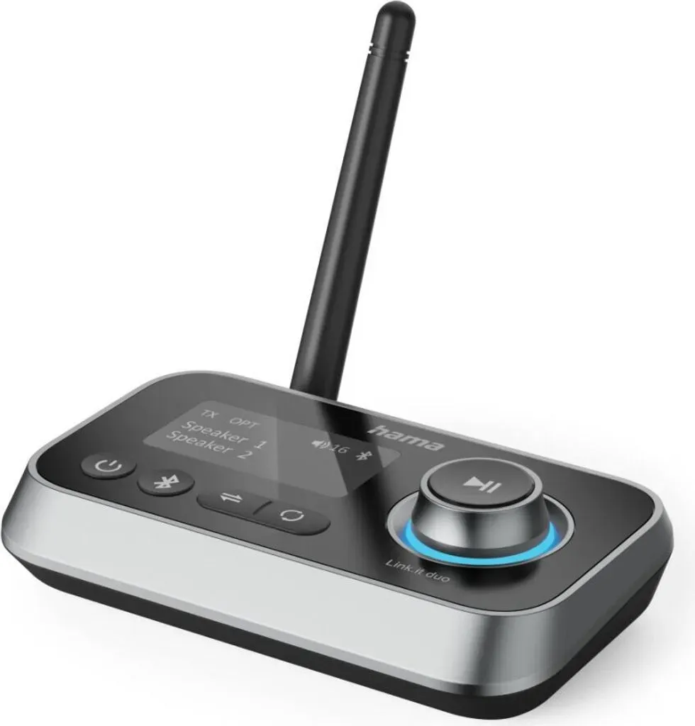 Zustand: Neu - Bluetooth-Adapter - Hama - 00205322 - EAN: 4047443515278 - Bluetooth für TV nachrüsten: auch für Musikanlage und Beamer ohne Bluetooth, um z.B. mit Bluetooth-Kopfhörer, Bluetooth-Lautsprecher oder Handy verbinden, Sound in bester Qualität mit APTX 2in1 Bluetooth Transmitter Verbindungen: TV, HiFi-Anlage oder Beamer über den 3,5-mm-Klinkenanschluss oder über den optischen Lichtleiteranschluss störungsfrei mit dem Bluetooth-Adapter verbinden Bluetooth Audio Adapter mit Sender und Empfänger: Es lassen sich immer zwei Geräte verbinden, z.B. zwei Kopfhörer mit einem TV oder ein Kopfhörer mit TV und Stereoanlage, komfortabel mit Autopairing Strom per Kabel USB-A - USB-C: Die Power für den Bluetooth Transceiver kommt direkt vom USB-Abschluss vom Gerät, z.B. vom Fernseher oder der HiFi-Anlage, Multipoint - 2 Kopfhörer an z.B. TV Lieferumfang: 1 Adapter, 1 Kabel USB-A - USB-C (0,8 m), 1 Kabel 3,5-mm-Klinke - RCA (1,0 m), 1 Kabel 2x 3,5-mm-Klinke (0,6 m), 1 Lichtleiterkabel (1,0 m), 1 Bedienungsanleitung, 2 Entsorgungszettel (Triman/WEEE) - bei Amazon.de ![]() Hama Link.it duo (Sender & Empfänger), Bluetooth Audio Adapter, Schwarz
