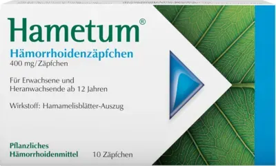 Hametum Hämorrhoidenzäpfchen 400 mg / Zäpfchen Für Erwachsene und Heranwachsende ab 1 n Wirkstoff: Hamamelisblätter-Auszug. Anwendungsgebiete: Juckreiz, Nässen und Brennen in den Anfangsstadien von Hämorrhoidalleiden. - bei ipill.de - aus Yadore Produktdaten ![]() ![]() Dr. Willmar Schwabe HAMETUM Hämorrhoiden Zäpfchen 10 St.