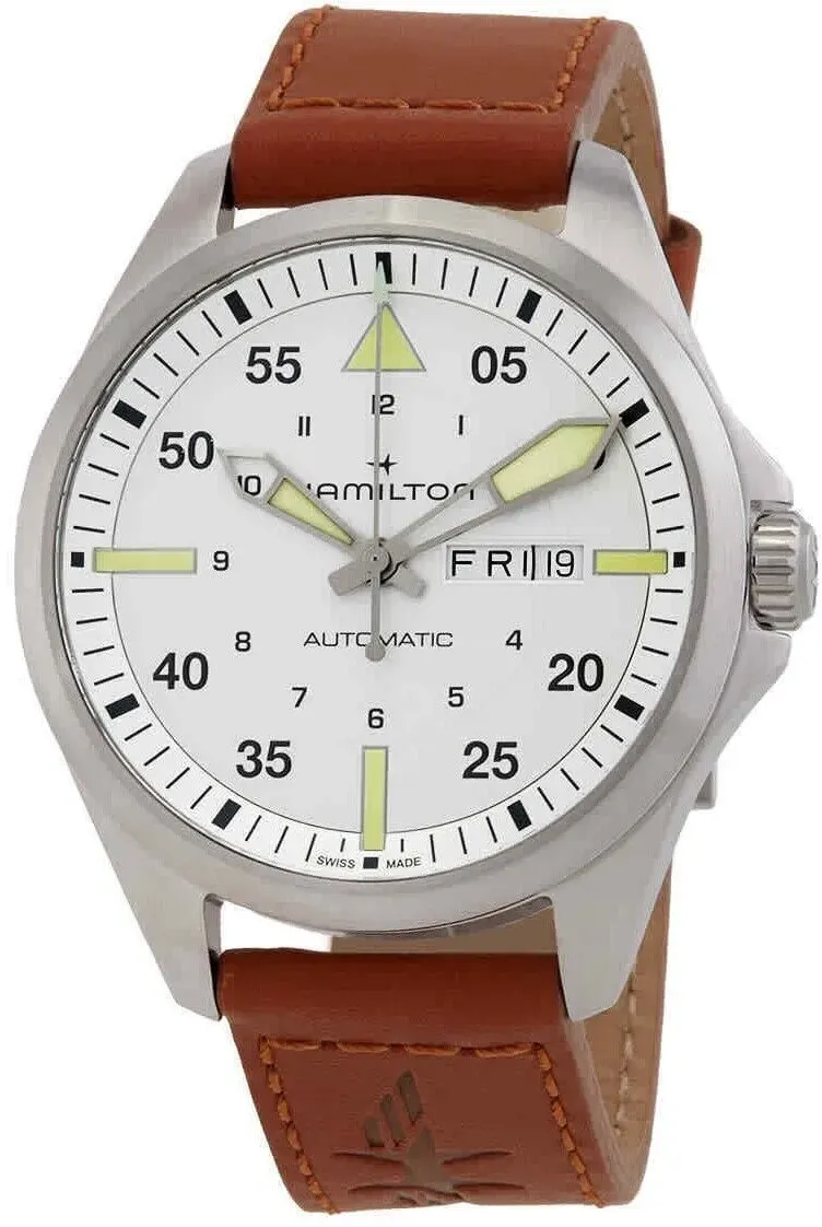 4 Händlerangebote bei billiger.de - Kategorie: Herrenuhren - Hamilton - Swiss Made Automatikuhr in Unisexgröße aus der Kollektion Khaki Field, mechanisches Automatikwerk C07.611, Gangreserve bis zu 80 Stunden, hellgrünes Zifferblatt, lumineszierende Zeiger und Zahlen, zentraler Sekundenzeiger, Gehäuse aus mattiertem Titan, verschraubter Glas-Gehäuseboden, geriffelte Krone, kratzfestes Saphirglas, Armband aus hellbraunem Leder, matte Dornschließe mit Logo, wasserdicht bis zu einem Druck von 10 bar, Durchmesser 42 mm, Höhe 11,45 mm - GTIN:7630458803262 Die Scuba Auto Nato ist eine robuste Taucheruhr mit Nato-Armband, perfekt für sportliche Aktivitäten. ![]() ![]() Hamilton Scuba Auto Nato 40 mm H82375961
