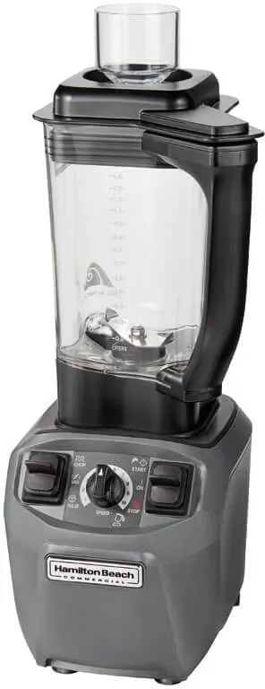 Verfügbarkeit: Sofort verfügbar, Kategorie: Mixer - Hamilton Beach Commercial - GTIN:0040094942541 - Der Hamilton Beach Tango® Commercial Bar Blender hat zahlreiche praktische Eigenschaften, die ihn für eine Bar mit Frozen-Drink-Ausschank unentbehrlich machen.Dank seiner Hochleistungsfähigkeit von 2,4PS sowie einem integrierten Timer blendet der HBH455-CE selbständig und innerhalb kürzester Zeit. Der Barmixer verfügt außerdem über einen 'Open lid' Sicherheitssensor, und einen weiteren, der das 'Jar alignment' kontrolliert. Sofern der Deckel unverschlossen ist, oder der Mixcontainer nicht korrekt auf seiner Unterlage steht, blockiert das Gerät eigenständig den Start, sodass Chaos und gefährliche Unfälle vermieden werden. Der quaderförmige Mixcontainer wird aus BPA-freiem, transparentem Copolyester hergestellt und ist selbstverständlich lebensmittelecht. Auf einer Seite trägt er eine vertikale Skalierung mit weißen Ziffern. In 0,1l Intervallen kann man dort die Füllhöhe von 0,2l bis h... - 659,00 Euro bei Barstuff - gefunden von billiger.de Der Hamilton Beach ExpeditorTM 510 Culinary Blender (HBF510-CE) mit Tritan Becher ist ein vielseitiger kulinarischer Mixer für professionelle Küchen. ![]() ![]() Hamilton Beach ExpeditorTM 510 Culinary Blender (HBF510-CE) - Tritan Becher 1,4l