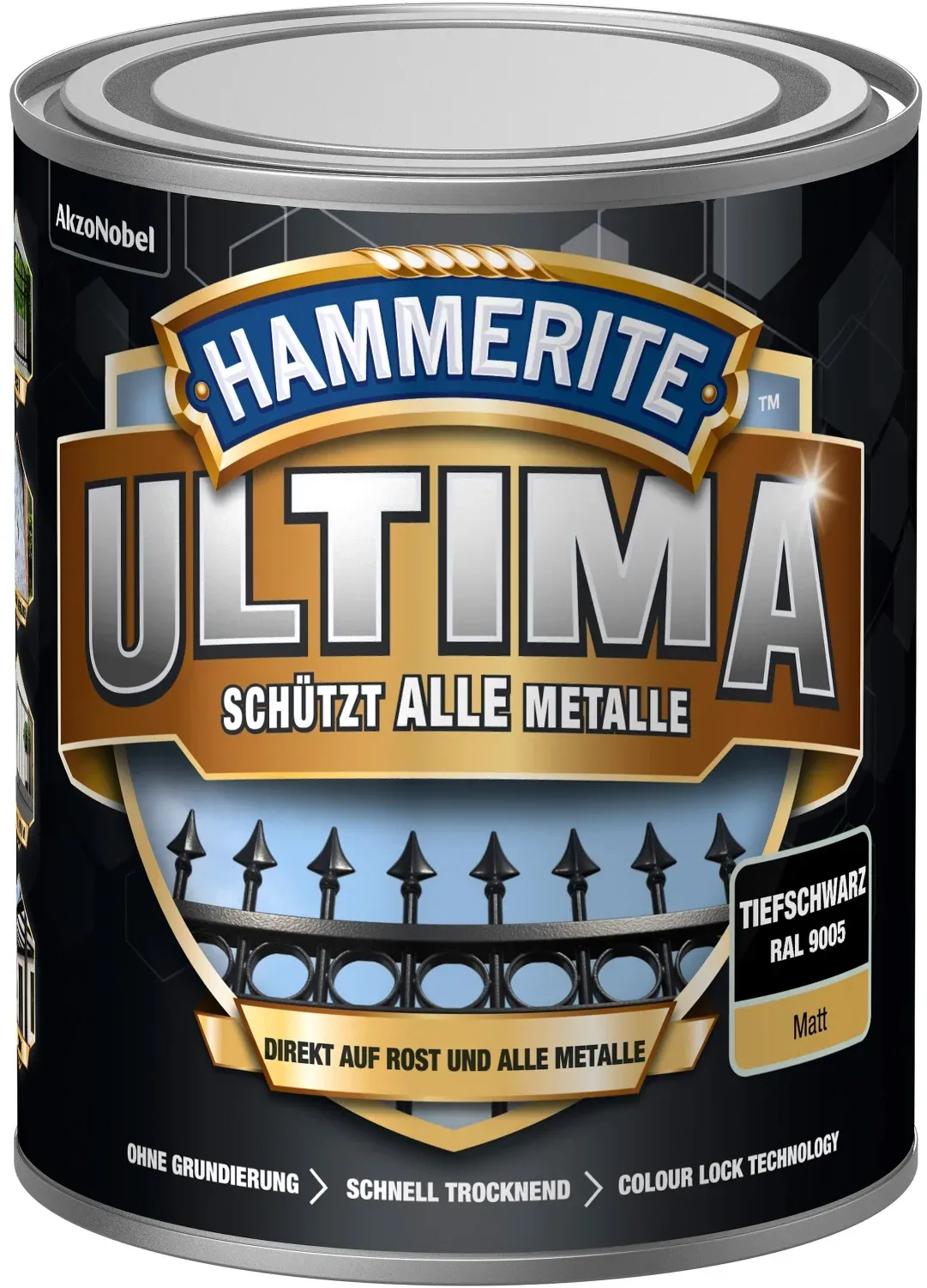 Kategorie: Farben & Lacke - HAMMERITE - GTIN:4007591725462 - Schützt alle Metalle Direkt auf Rost streichbar 3in1, Rostschutz, Grundierung und Lack in einem Extrem farbton- und glanzstabil - 24,94 Euro bei Amazon Marketplace Home Improvement - gefunden von billiger.de Dieser Premium Ultima Metall-Schutzlack in glänzendem Tiefschwarz ist eine hochwertige Option für maximalen Schutz. ![]() ![]() Hammerite Ultima Premium Metall-Schutzlack glänzend Tiefschwarz 750 ml
