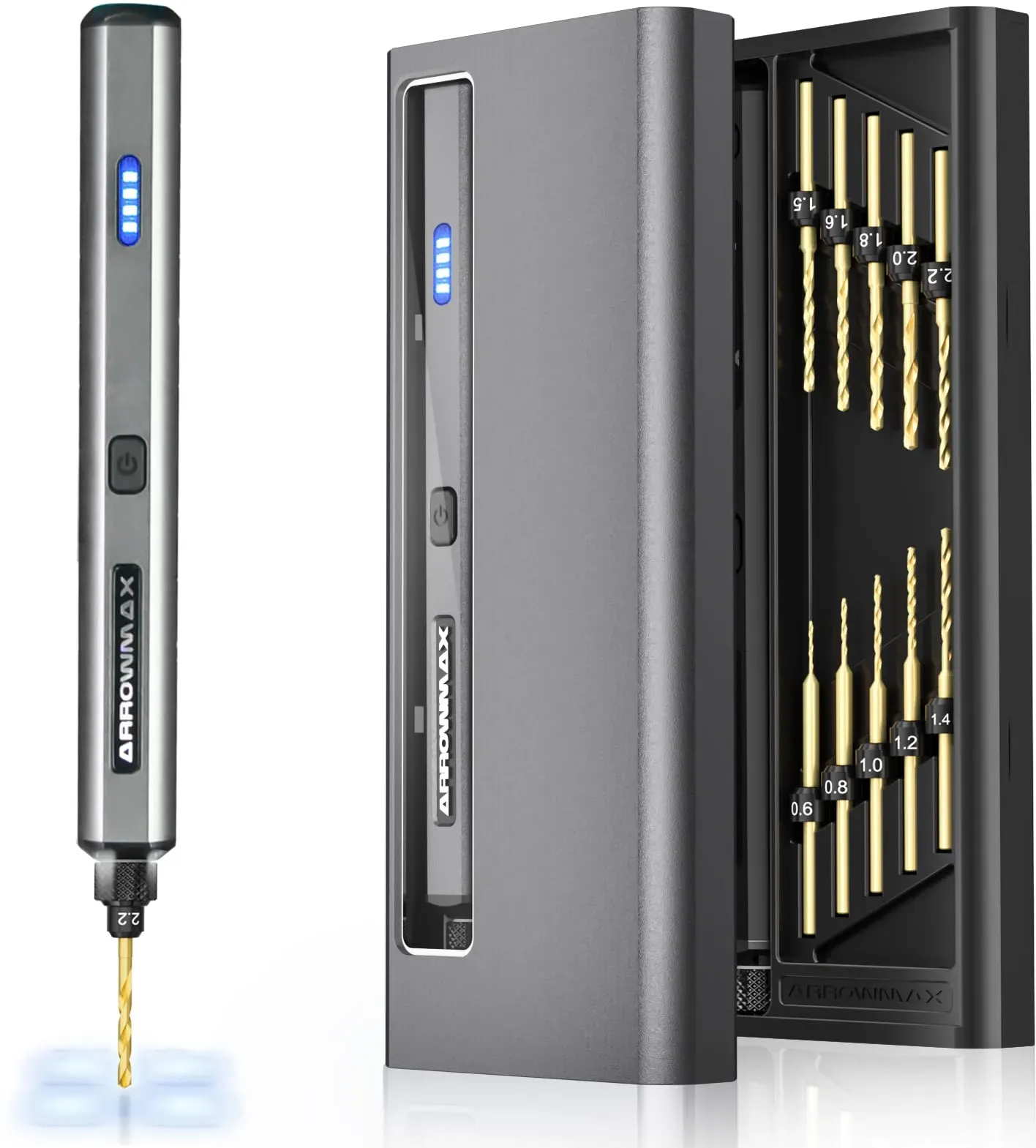 Kategorie: Zubehör für Elektrowerkzeug - Arrowmax - Vielseitiges Bohrer-Set: Das Präzisionsbohrer-Set enthält 10 größenmarkierte Bits von 0,6 mm bis 2,2 mm mit einem Schaft mit 2,35 mm Durchmesser. Geeignet zum Bohren verschiedener Materialien wie Kunststoff, Schale, Holz, Leder und mehr, ist es für Bohrbegeisterte geeignet. Der Wechsel des Bohrers ist ein Kinderspiel, ohne zusätzliches Werkzeug. Die Bohrer werden ordentlich in einem Aluminiumgehäuse aufbewahrt und mit Magneten für einfachen Zugang und Transport sicher an Ort und Stelle gehalten. Kompakt und leistungsstark Unsere Bohrmaschine im Taschenformat verfügt über einen 500-mAh-LiPo-Akku und ein komfortables Metallgehäuse, das sich gut in der Hand anfühlt. Mit einer Drehzahl von 600 U/min liefert er leistungsstarke Leistung und hohe Arbeitseffizienz. Entwickelt, um leicht und tragbar zu sein, ist es perfekt für Arbeiten in engen Räumen, wie zum Beispiel die Installation von Beleuchtung in Modellen. Sein ergonomisches Design sorgt für einen komfortablen Griff und eine einfache Handhabung. Einfache Ein-Knopf-Bedienung: Mit nur einer Taste bietet unser Mini-Bohrer eine intuitive Steuerung. Drücken Sie es einmal für die Drehung im Uhrzeigersinn, drücken Sie erneut gegen den Uhrzeigersinn, und drücken Sie ein drittes Mal, um den Bohrer auszuschalten. Sie müssen die Taste während des Betriebs nicht kontinuierlich halten, was den Komfort erhöht. Verbesserte Beleuchtung und Batterieanzeige: Unser Bohrer ist mit 4 ... Ein professionelles Brunnenbohrer-Set mit Plunscher, das sich für größere Projekte im Garten- und Landschaftsbau eignet. ![]() ![]() PWSAM Brunnenbohrer Brunnenbohrgerät Handbohrer Erdbohrer mit Plunscher Set komplett (10m 120mm Plunscher 90mm)