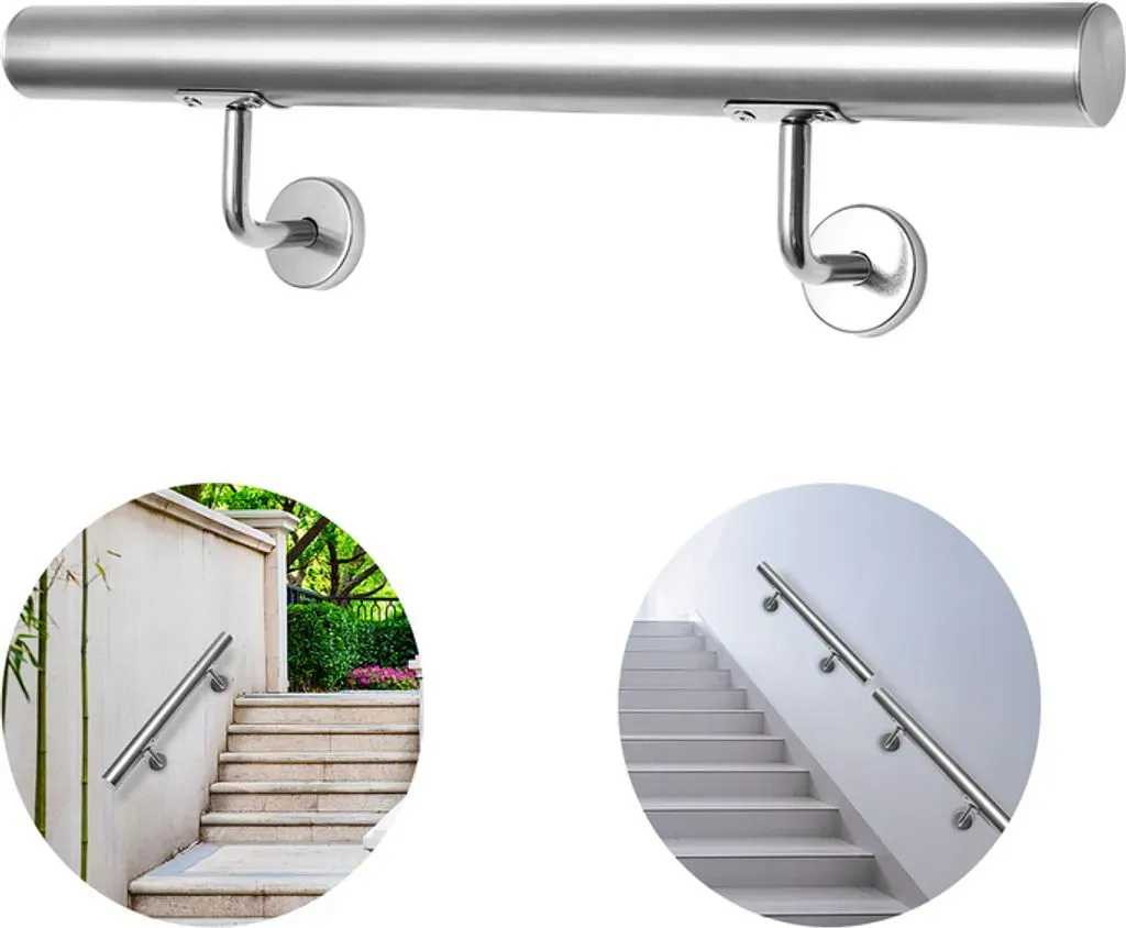 Kategorie: Treppen & Geländer - Einfeben - GTIN:0726503063891 - Größe Geländer Länge: 180 cm, Handlauf hat einen Durchmesser: 42 mm. Für einen angenehmen und sicheren Griff und ist mit leicht gewölbten Endkappen geschlossen. Fest fixiert Bei guter Installation wird der Handlauf fest fixiert, daher ist er sicherer für die älteren und Kinder. Ein unverzichtbares Hilfsmittel, vor allem für Kinder, ältere Menschen oder Personen, die Schwierigkeiten beim Treppensteigen haben. Wetterfest Aus hochwertigem Edelstahl, hohe Qualität, Witterungsbeständigkeit, starker Korrosionsbeständigkeit, exquisites Aussehen, langlebig, pflegeleichter Wandhandlauf für den Innen- und Außenbereich geeignet (im Außenbereich ist regelmäßige Pflege notwendig) Einfach zu Installieren Mit den beiliegenden passenden Schrauben und Dübel kann der Wandhandlauf ganz einfach mit nur wenigen Handgriffen an jeder Wand, egal ob Außen- oder Innenwand, befestigt werden. Lieferumfang 1xTreppengeländer und Wandhalterungen(je nach Mengeauswahl mehr),Montagematerial und robusten Metalldübel.Technische Daten:Material: Gebürsteter EdelstahlLänge:180 cm cmWandstärke: 1mmDurchmesser: 42mmFarbe: SilberVorteil:-Leichte Montage-Gute Genauigkeitsausführung-Komfortables humanisiertes Design- Wetterfest, robust, stabil und langlebig-Einfach zu säubern-Die Edelstahloberfläche ist glatt, leicht zu reinigen und zu pflegen. Trocknen Sie das Edelstahl-Treppengeländer nur mit einem Handtuch.Lieferumfang:1x Treppengeländer ... Dieser Relaxdays Handlauf aus 201er Edelstahl bietet eine gute Länge von 150 cm und ein mattes Finish für 39,99 Euro. ![]() Manomano.d e