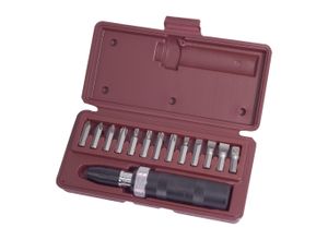 Kategorie: Schraubenzieher - ATE - GTIN:4006633386784 - Oft sind die Sicherungsschrauben für die Bremsscheiben festgerostet. Das Lösen mit Schraubendrehern bereitet dann erhebliche Schwierigkeiten. Mit dem ATE Handschlagschrauber mit entsprechenden Einsätzen für die gängigen Kreuzschlitzschrauben, Schrauben mit Innensechskant und TORX-Schrauben können die Sicherungsschrauben ohne Beschädigung problemlos gelöst werden.Durch einen Schlag auf den Handschlagschrauber wird zum einen das Bit fest in den Schraubenkopf gepresst, zum anderen durch einen erzeugten Drehimpuls die Schraube gelöst. Der Handschlagschrauber und die Bits bestehen aus hochfestem Chrom-Vanadium-Stahl in Industriequalität. - 120,25 Euro bei retromotion.com - gefunden von billiger.de Dieses Gedore Set ist eine weitere hochwertige Option für den professionellen Einsatz, bekannt für seine Langlebigkeit. ![]() ![]() Gedore Schraubenlöser-Satz, 18-tlg, 1/2", rechts und links, Handschlagschrauber-Set mit Bits, Hammerbetätigung, K 1900-018