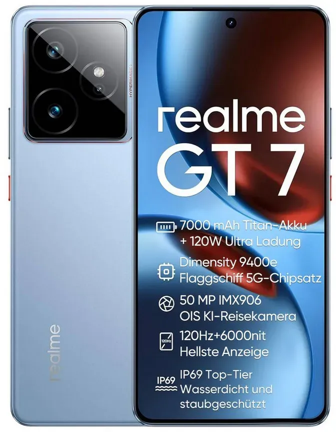 Prepaid-Handys PC-System & Mobiles Gerät Mobiles Gerät Mobiltelefon Mobiltelefone - EAN:8806095982892 - Mit dem Samsung Galaxy A56 5G kommt das gewisse Extra in den digitalen Alltag: Dieses Smartphone beeindruckt mit schlanken Design und einer schicken Glasrückseite. Es ist aber dank IP67-Zertifizierung als Schutz gegen Staub und Wasser und Corning Gorilla Glass Victus+ auch gut für herausfordernde Situation gerüstet. Viel Display, wenig Rahmen ist dabei das Motto: Das 17,01 cm (6,7') große Super AMOLED-Display beeindruckt mit lebendigen Farben, klaren Details, einer Helligkeit von bis zu 1200 cd/m² und einer Wiederholrate von bis zu 120 Hz. Drei Kamera-Objektive halten tolle Momente fest und mit optischer Bild- und Videostabilisierung, Weitwinkel und smarten Nachbearbeitungsfunktionen wie dem Objektradierer, Filtern und perfekten Gruppenfotos steht das Lieblingsmotiv immer im Vordergrund. Flüssige Performance mit dem Samsung Exynos 1580 Achtkern-Prozessor, ein ausdauernder Akku mit 5000 mAh Kapazität und 5G sind ebenfalls mit dabei. - gefunden von Kelkoo Das Realme GT7 5G ist mit 479.99 Euro eine gute Mittelklasse-Option mit Flaggschiff-Prozessor und großem Display. ![]() ![]() Realme Realme GT7 5G handy, 12+256GB, Dimensity 9400e Flaggschiff, Android Smartphone (17,93 cm/6.78 Zoll, 256 GB Speicherplatz, 50 MP Kamera) blau