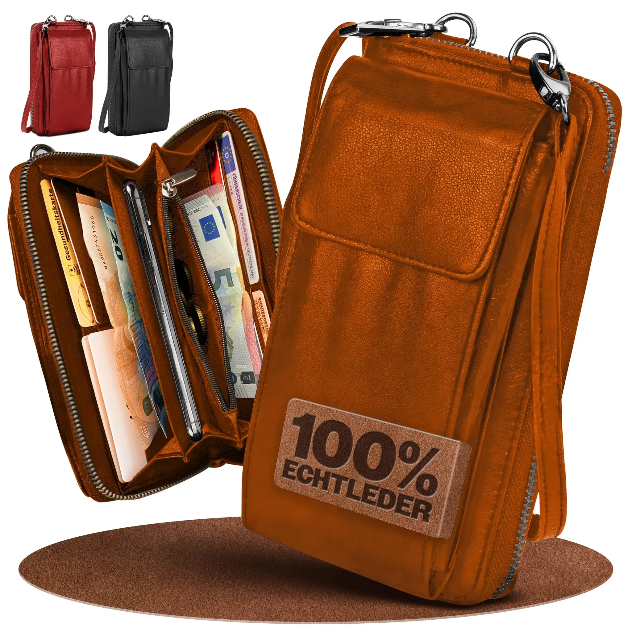 Handtaschen Alltags Taschen Gesamtsortiment Mode Taschen + Gepäck Handtasche Taschen & Handtaschen - EAN:4056185170942 - Moderne Handytasche von Suri Frey mit verstellbarem Umhängeriemen. Die Handytasche besticht durch ihr schlichtes, klassisches Design und bietet sichere Aufbewahrung für Ihr Smartphone. Die schöne, grosse Quaste am Reissverschluss verleiht der Tasche eine schickere Note. - gefunden von Kelkoo Diese Echtleder-Handytasche zum Umhängen bietet eine Kombination aus Portemonnaie und Handyfach, ideal für unterwegs. ![]() ![]() FLEXIBILITE Handytasche Zum Umhängen Mit Portemonnaie | Echt Leder Handy-Umhängetasche Damen | Handytasche Mit Geldbörse [2025] | EXTRA Leicht 220 g Cognac